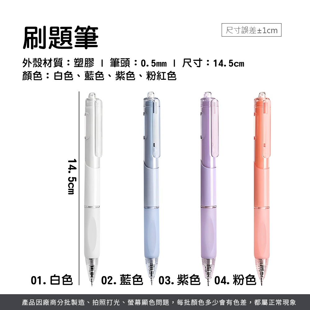 刷題筆 原子筆 小白筆 自動筆 按壓式中性筆 刷題筆速乾 按壓原子筆 黑筆 紅筆 藍筆 0.5mm筆芯白色|藍色|紫色|粉色Pens & InksLAVIDA 育兒好好玩!