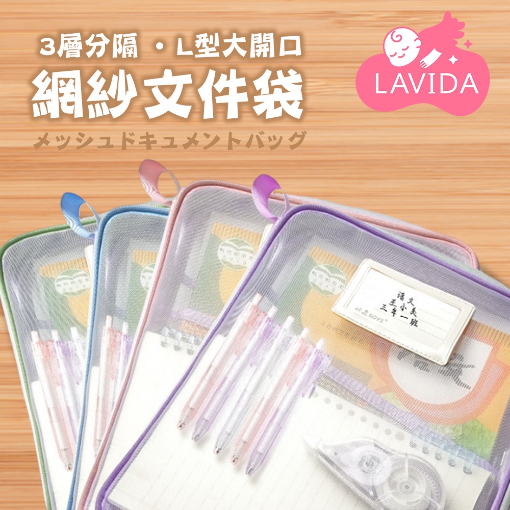 【LAVIDA嚴選】網紗文件袋 收納袋 文件資料袋 文具收納 文件收納 分類袋 文件分類袋 資料袋 文具收納袋紫色|綠色|藍色|粉色Folders, Paper Organizers & AccessoriesLAVIDA 育兒好好玩!