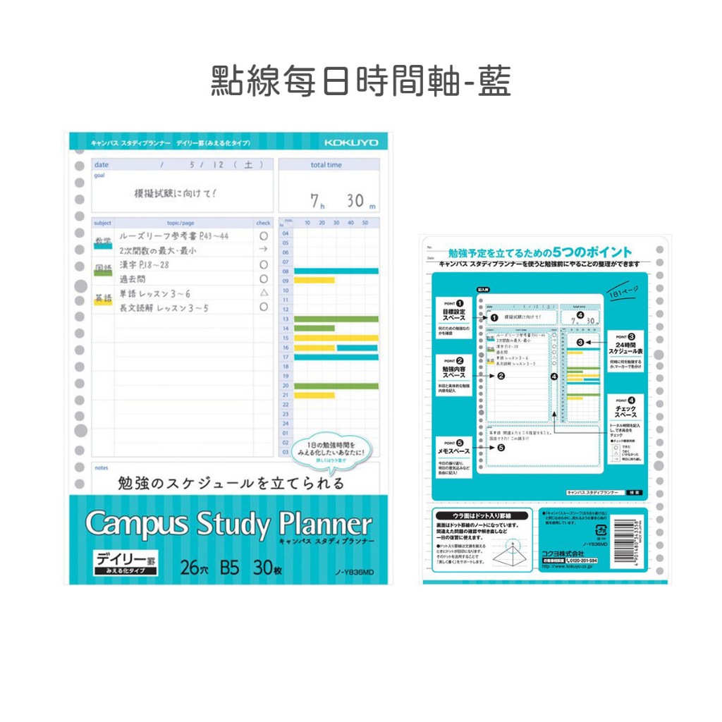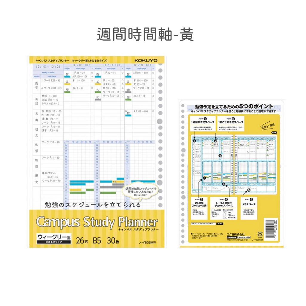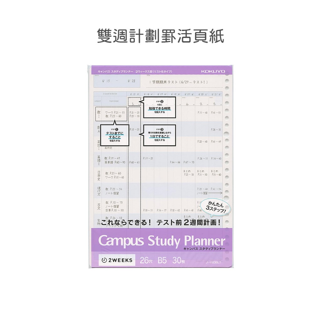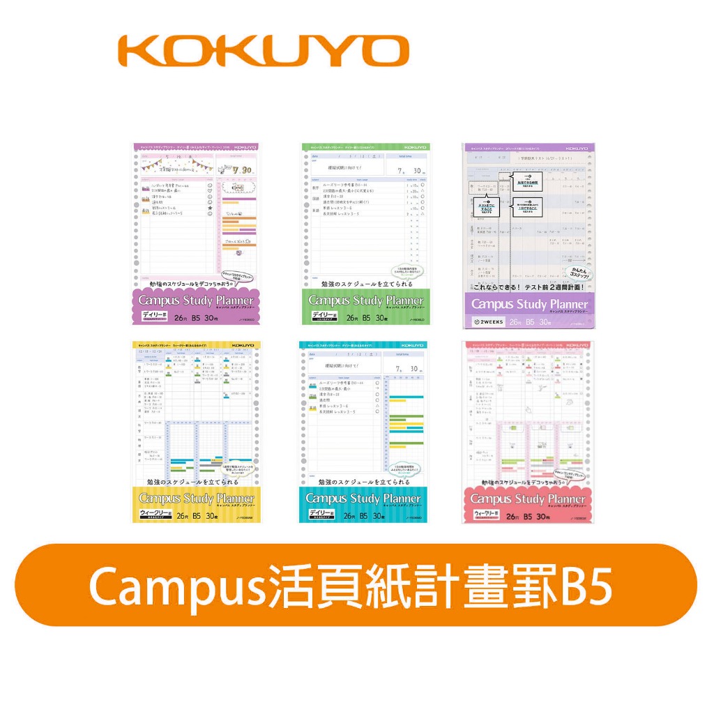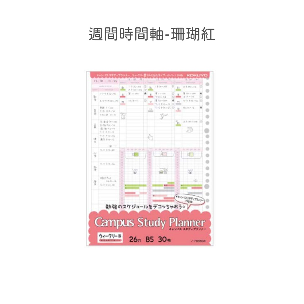 【日本KOKUYO】Campus計畫用活頁紙 26孔 B5 每日/週間/清單每日時間_粉|每日時間_藍|每日清單_綠|週間_黃|週間_珊瑚粉|雙週間_紫Loose LeafKOKUYO台灣總代理官方旗艦店