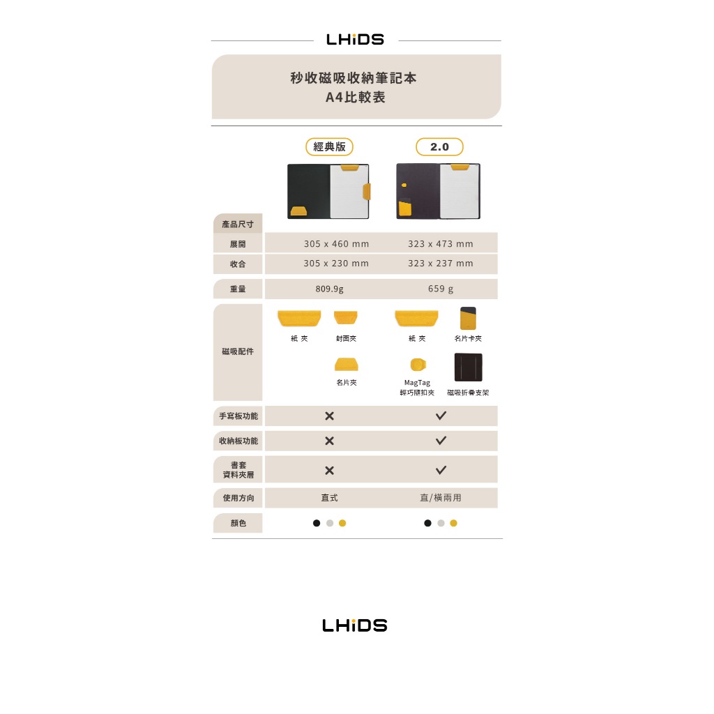 『LHiDS』磁吸收納筆記本2.0(A4) 三色任選 / 筆記本 / 磁吸 / A4經典黃|俐落灰|質感黑Notebooks & Notepadsjiouu 設計樂生活