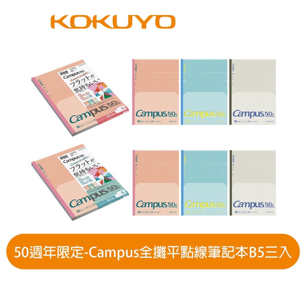 【日本KOKUYO】Campus 50週年限定全攤平點線筆記本B5 3色入 6~7mm格線 30張 日本製3入/7mm點線|3入/6mm點線Notebooks & NotepadsKOKUYO台灣總代理官方旗艦店