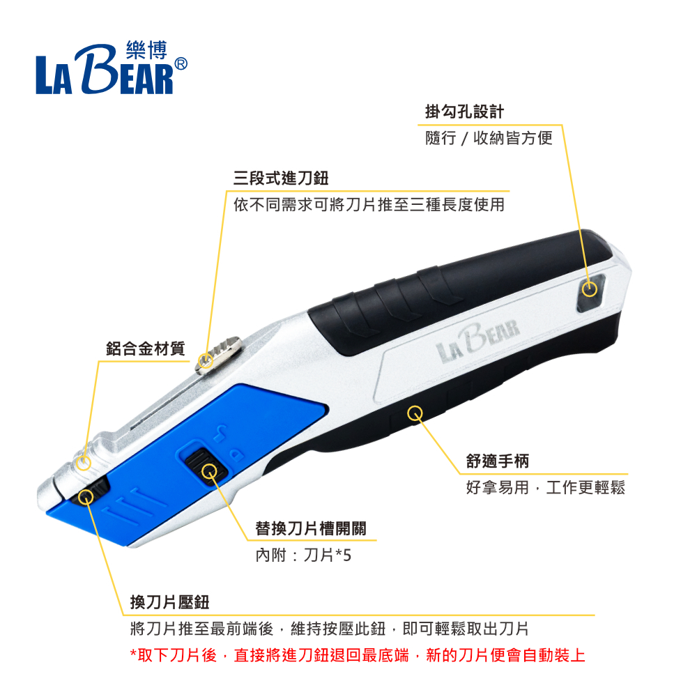 【LaBear】彈匣式自動進刀美工刀 重力式美工刀 附5片刀片 快速換刀 自動上刀 強力美工刀 工業用美工刀自動進刀美工刀Pen Knives & Paper CuttersLaBear 樂博工具