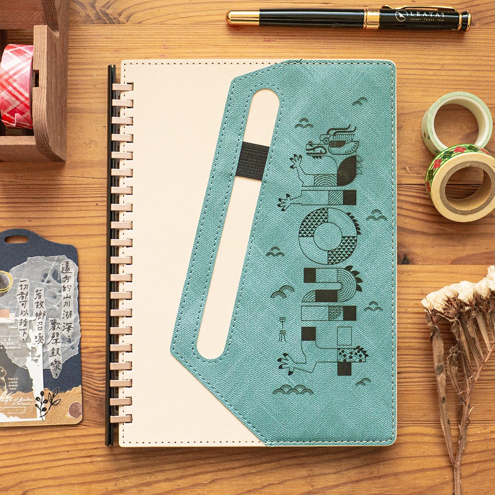 A5 抽取式仿皮革活頁筆記本-方便放筆-蘇打色-純封面/封底無雷雕|探索恐龍|雲龍嬉戲|與龍共舞Notebooks & NotepadsLeatai 磊泰手帳日誌