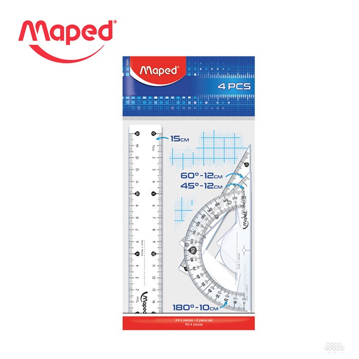 【法國Maped】學用透明幾何製圖尺4件組【法國Maped】學用透明幾何製圖尺4件組Rulers, Protractors & Stencilsmama-papa親子網