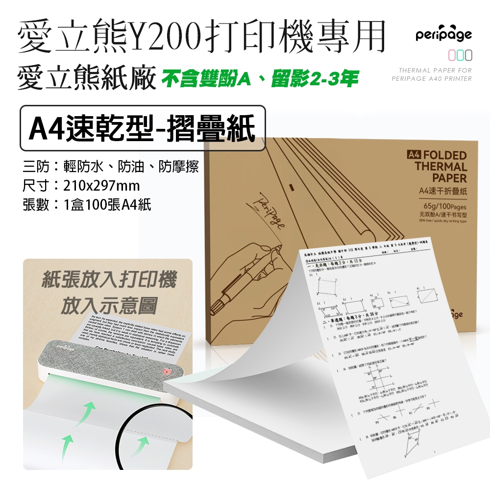 LM Y200專用 A4摺疊-速乾型100 多年留影 不含雙酚A 錯題打印 感熱紙 熱感應紙 A4紙 打印紙【愛立熊-摺疊】A4速乾型 1盒100張Thermal Paper & Continuous PaperLM聆樂-專業3C影音家電