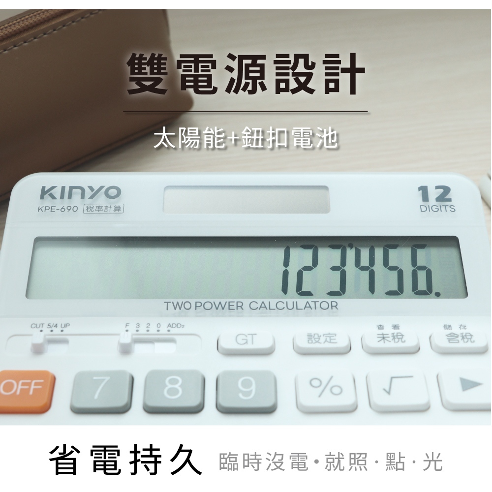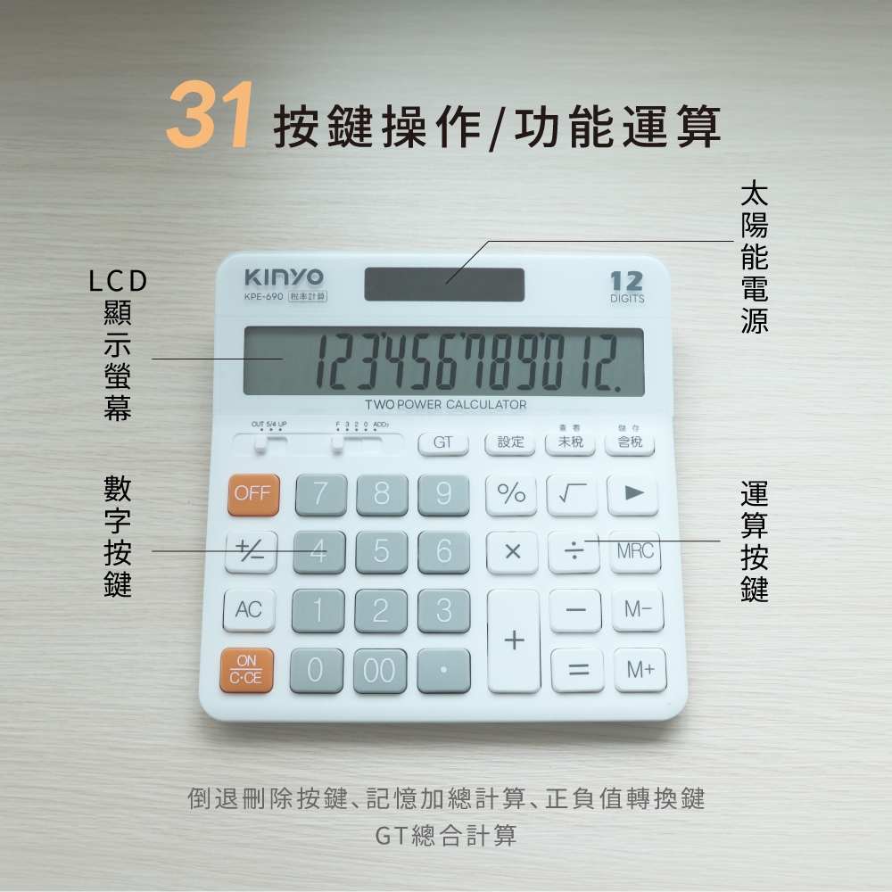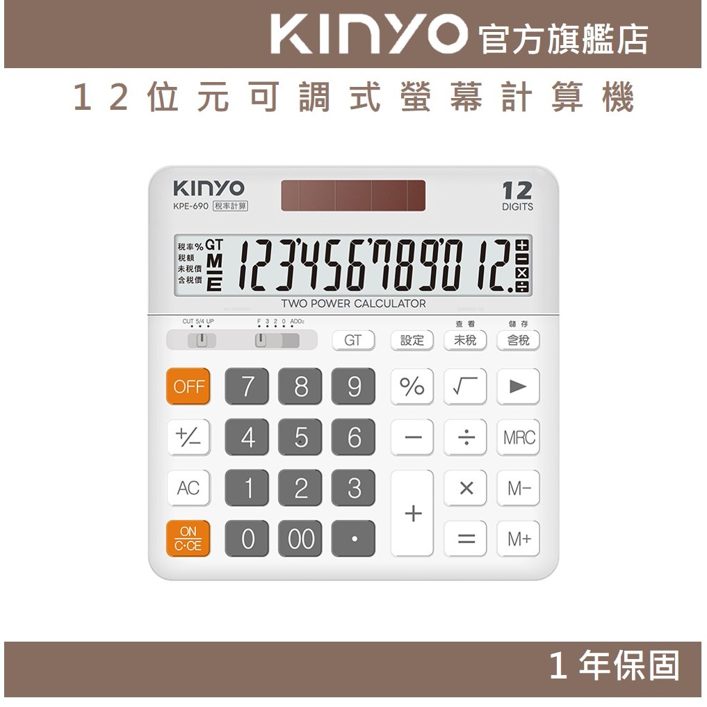〖KINYO〗 12位元寬螢幕稅率計算機 (KPE) 上課 收銀 財務 學習 辦公 會計 太陽能 電池KPE690 12位元寬螢幕稅率計算機CalculatorsKINYO官方旗艦店_家電館
