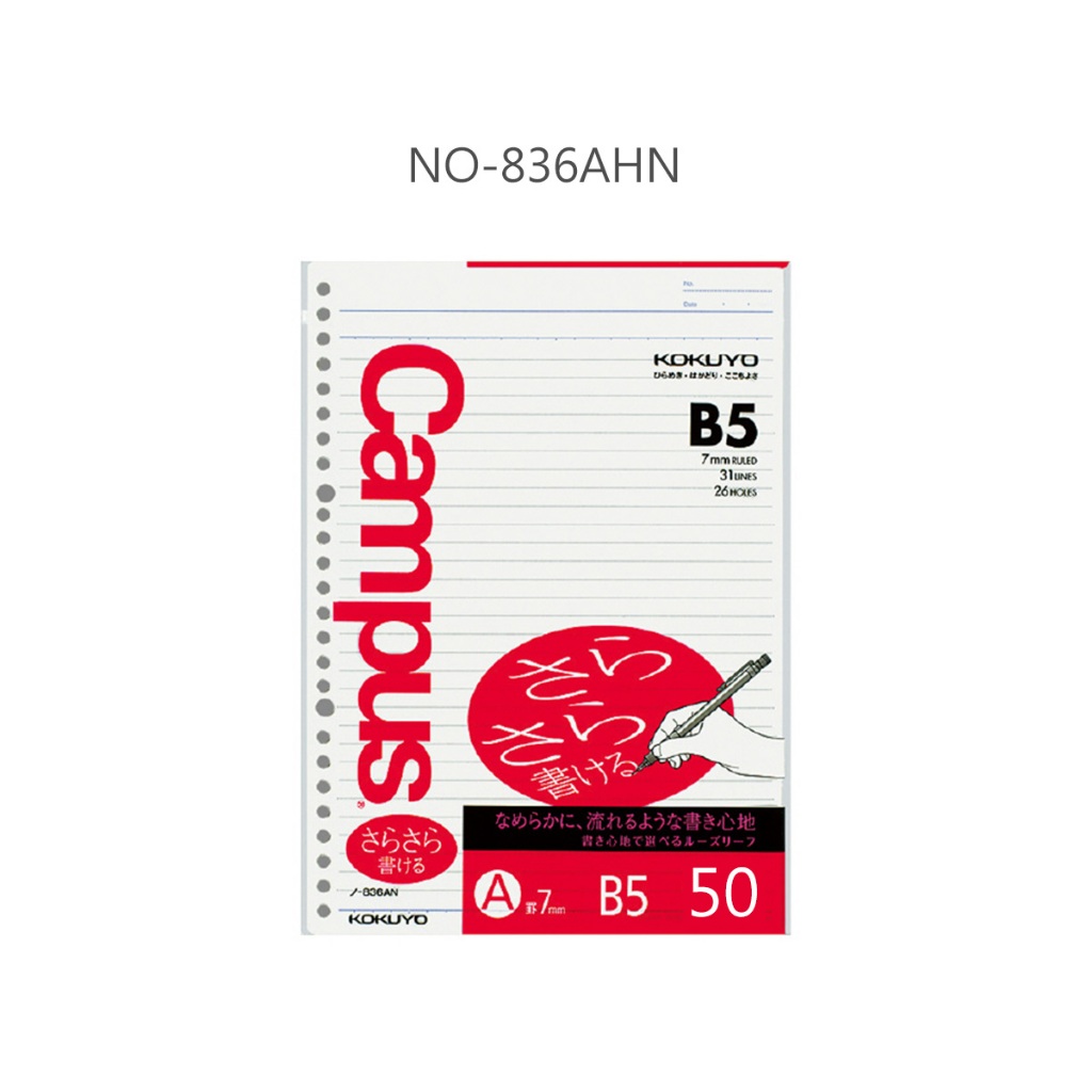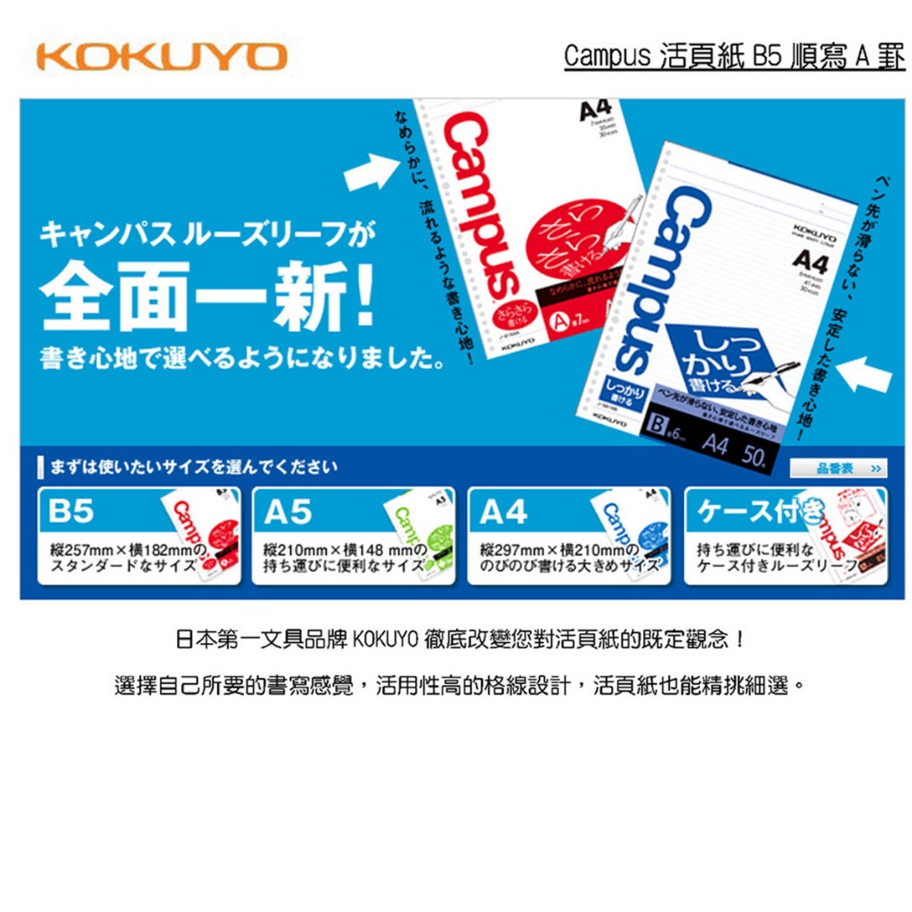 【日本KOKUYO】Campus橫線活頁紙20/26/30孔 A5/B5/A4 7mm 順寫 日本製A5/7mm/100張|B5/7mm/50張|B5/7mm/100張|A4/7mm/50Loose LeafKOKUYO台灣總代理官方旗艦店