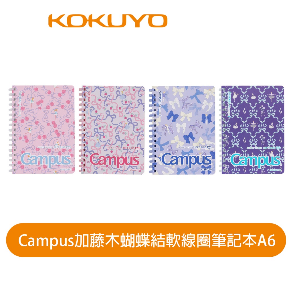 【日本KOKUYO】Campus加藤木蝴蝶結軟線圈筆記本A6 50頁 與日本插畫家加藤木麻莉合作A6/藍綠|A6/粉藍|A6/藍藍|A6/灰粉Notebooks & NotepadsKOKUYO台灣總代理官方旗艦店