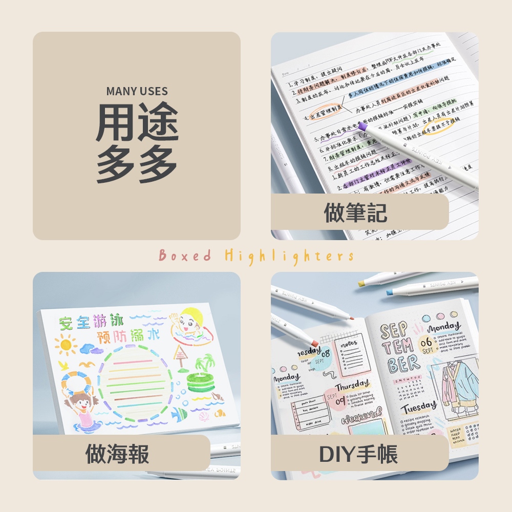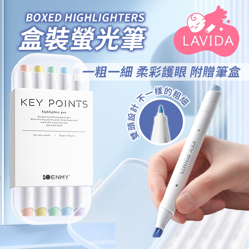 盒裝螢光筆 雙頭螢光筆 記號筆 標註筆 做筆記 畫重點 手帳塗鴉筆 透明筆盒 文具 學習 著色 五色莫蘭迪色|馬卡龍色|螢光色HighlightersLAVIDA 育兒好好玩!
