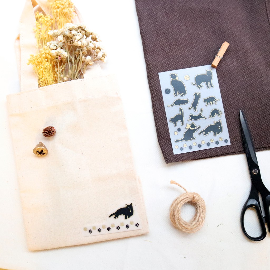 irodo 免燙熨布用纖維轉印貼 / 貓咪 兩款(日本原創技術/布織品專用/親子手作DIY/刮刮樂/材料包/素材/手帳)金,無|黑,托特包提袋乙份|黑,無|金,托特包提袋乙份Labels & StickersHongYeung 漢陽國際