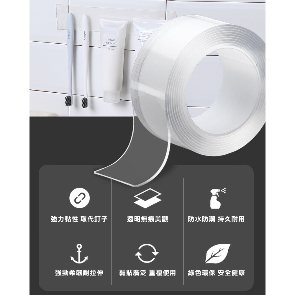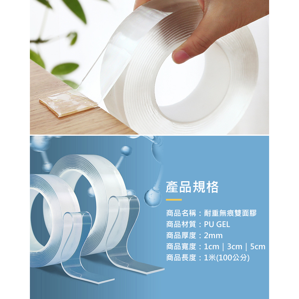【耐重無痕雙面膠】透明無痕雙面膠 可水洗 重複使用 透明雙面膠 萬用雙面膠 隨手貼 無痕雙面膠 強力雙面膠 雙面膠2mm厚.1米長,1cm寬|2mm厚.1米長,3cm寬|2mm厚.1米長,5cm寬Strings & TapesH MOD髮摩 品牌旗艦館