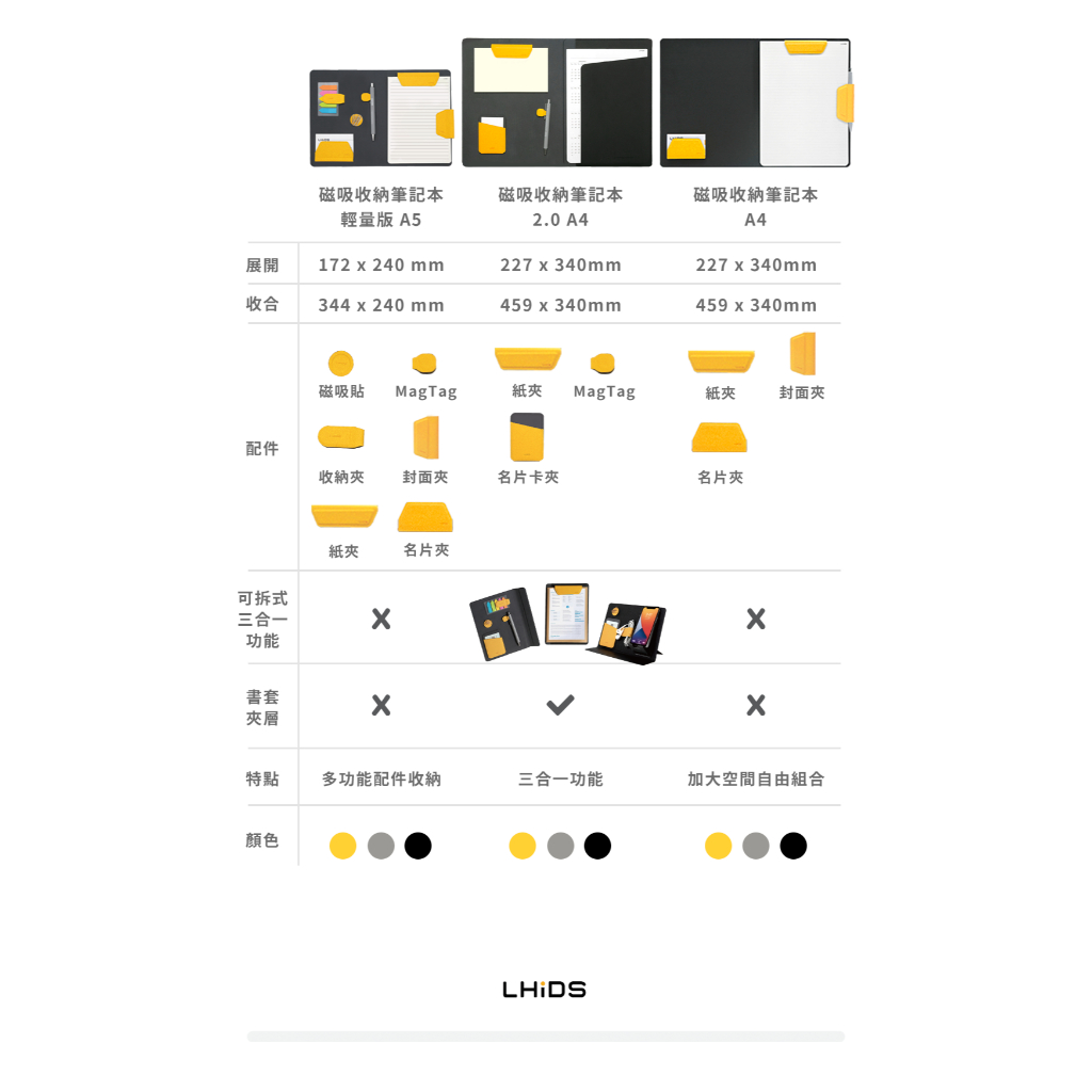 『LHiDS』秒收磁吸收納筆記本(A4) 七色任選 / 四季系列 / 筆記本 / 磁吸 / A4質感黑|俐落灰|經典黃|初秋栗杏|深冬夜藍|春日玫粉|涼夏海藍Notebooks & Notepadsjiouu 設計樂生活