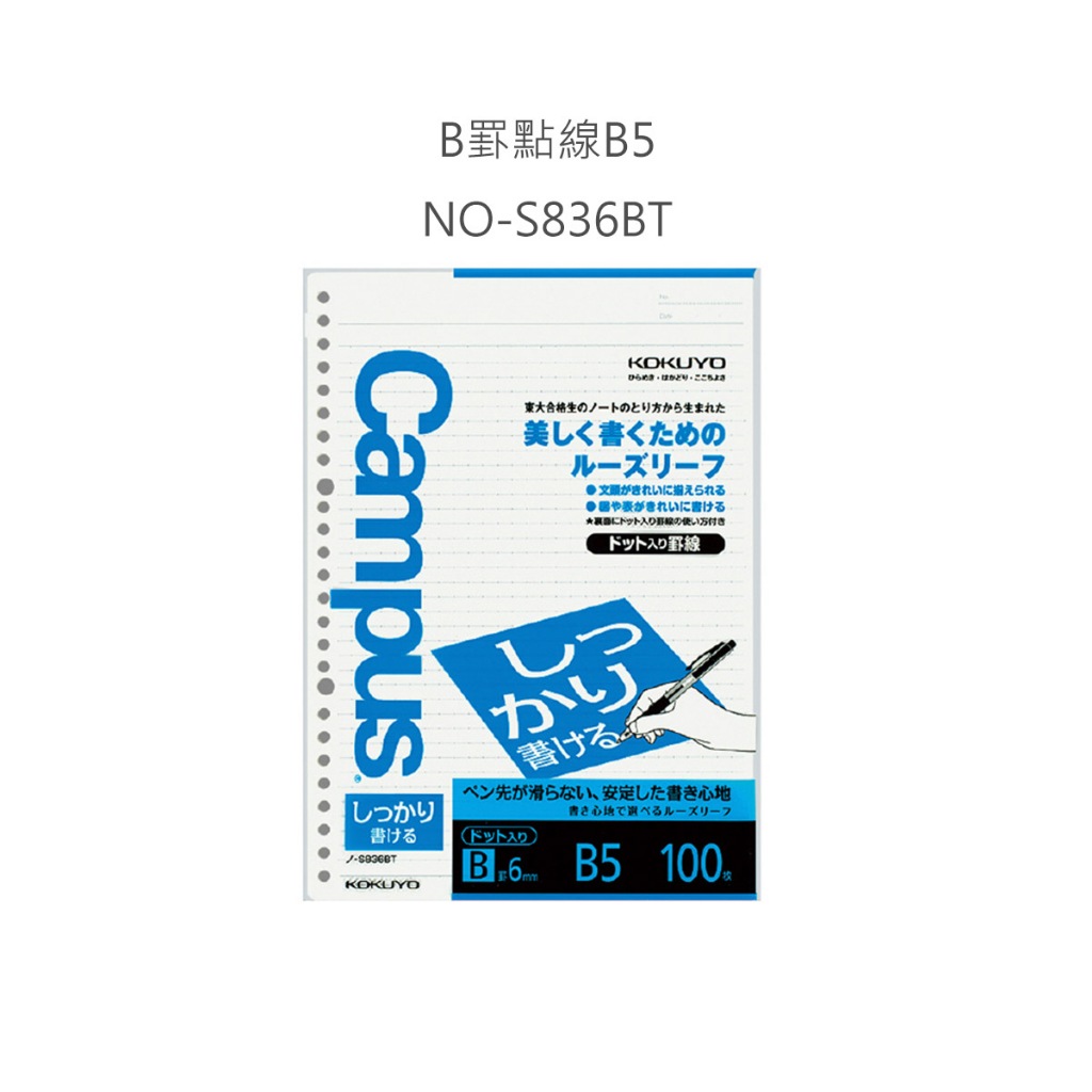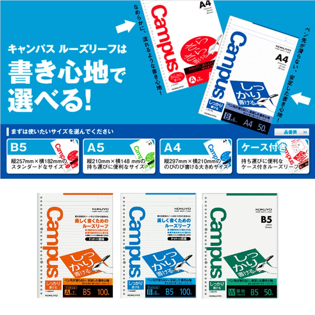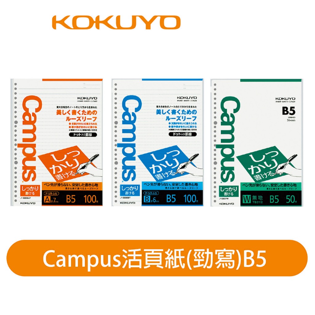 【日本KOKUYO】Campus橫線/空白活頁紙 26孔 B5 勁寫 日本製7mm|6mmLoose LeafKOKUYO台灣總代理官方旗艦店