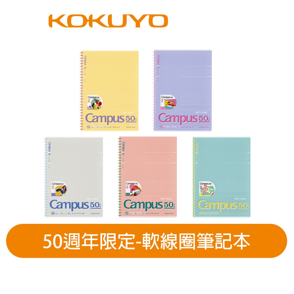 【日本KOKUYO】50週年限定-軟線圈筆記本 B5 40張 日本製粉橘|藍|灰|紫|黃Notebooks & NotepadsKOKUYO台灣總代理官方旗艦店