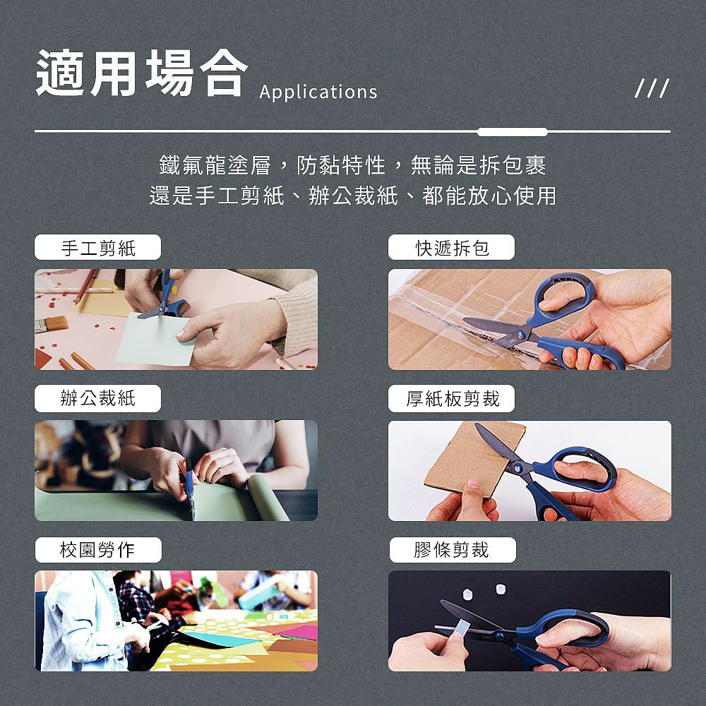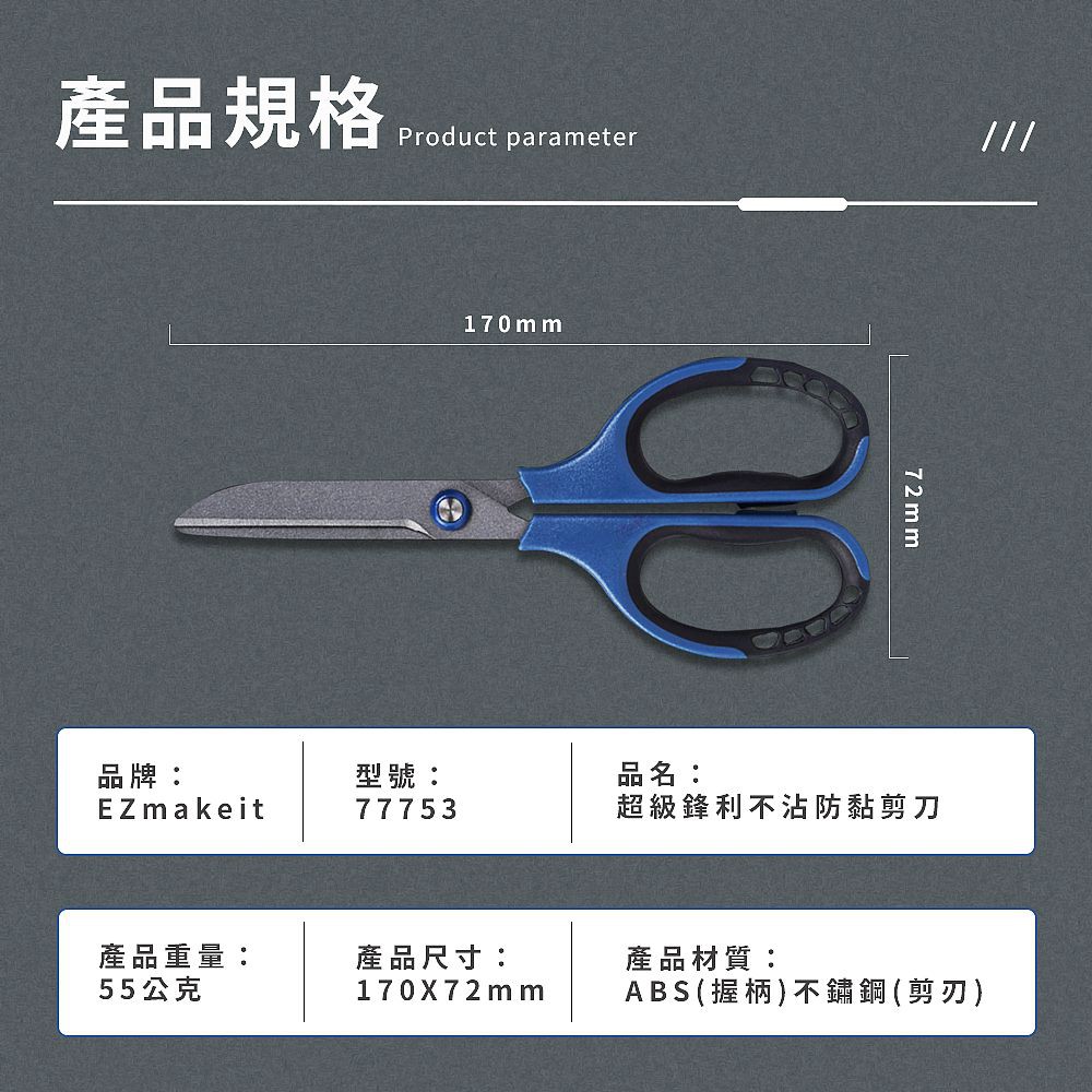 EZmakeit-77753 超級鋒利不沾防黏剪刀 舒適手感 拆箱刀 剪刀 鋒利剪刀 不黏膠剪刀 辦公剪刀 美工用剪刀1入ScissorsHANLIN官方旗艦店