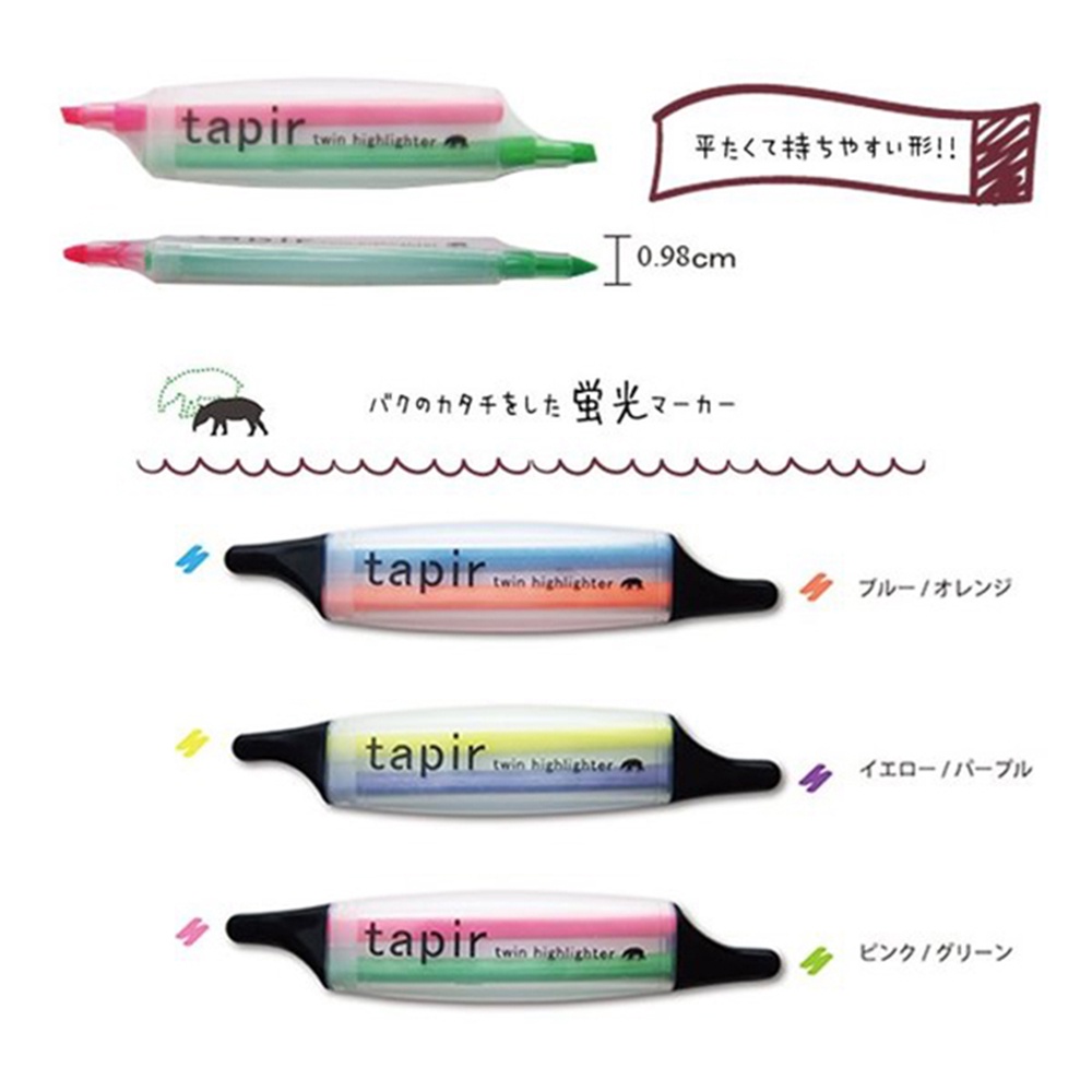 koBARU Tapir雙色螢光筆/ 三款-黃紫 / 藍橘 / 粉綠 / 3入組 (日本正版/文具手帳/標記筆/開學季)粉綠|3入組|黃紫|藍橘HighlightersHongYeung 漢陽國際