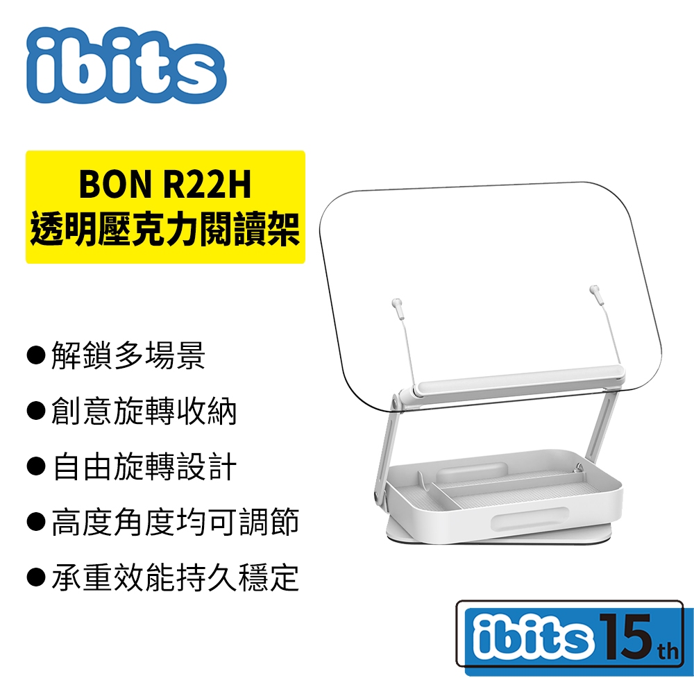 ibits BON R22H 透明壓克力閱讀架 多角度可調 書夾支撐穩固R21H經典款(無旋轉)|R22H旋轉款Othersibits手機配件 官方旗艦館