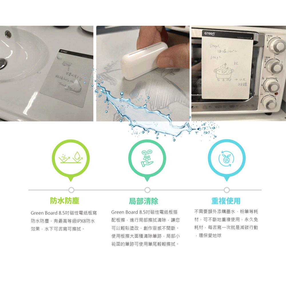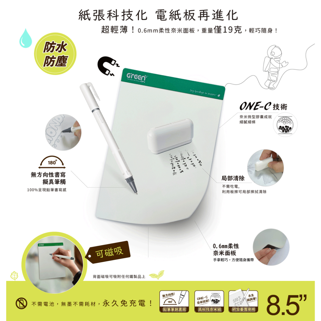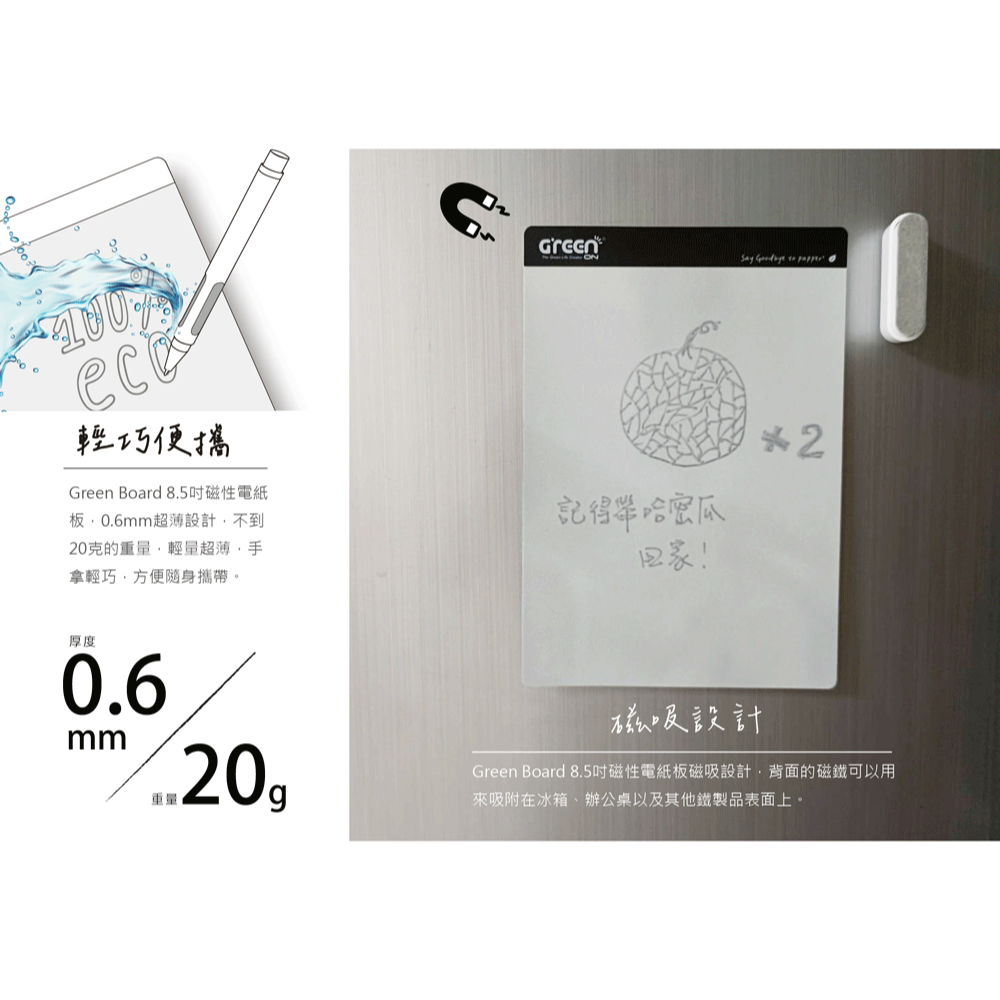 【Green Board】8.5吋磁性電紙板 0.6mm 超薄 出遊好物 練字板/寫字板 重複書寫 局部擦除黑色|綠色|粉色Writing Boards & Board StandsGreenon橘能