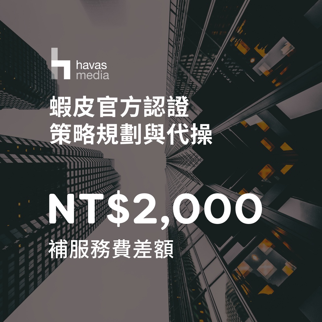 【蝦皮廣告代操】免設定費|官方認證 2,000元服務費—賣場廣告、關鍵字廣告、關聯廣告與賣場諮詢 Havas Media【蝦皮廣告代操】免設定費|官方認證 2,000元服務費—賣場廣告、關鍵字廣告、關聯廣告與賣場諮詢 Havas MediaShopee Paid Ads CreditsHavas Media Group 靈智廣告股份有限公司