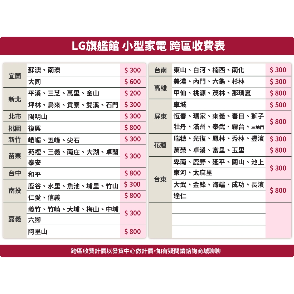 LG樂金 小家電跨區收費跨區費用$200|跨區費用$300|跨區費用$500|跨區費用$600|跨區費用$800OthersLG旗艦館