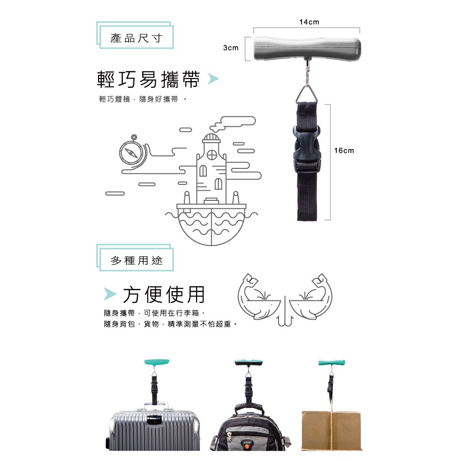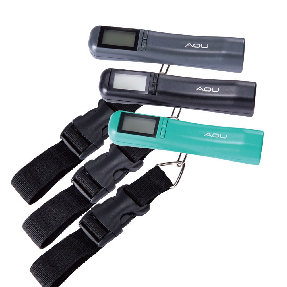 AOU 便攜式電子行李秤 多功能 YKK扣具 行李秤 電子手提秤 攜帶型手提行李秤 行李箱電子秤66-027個性黑|湖水藍|時尚灰Luggage ScalesFunbag樂包網