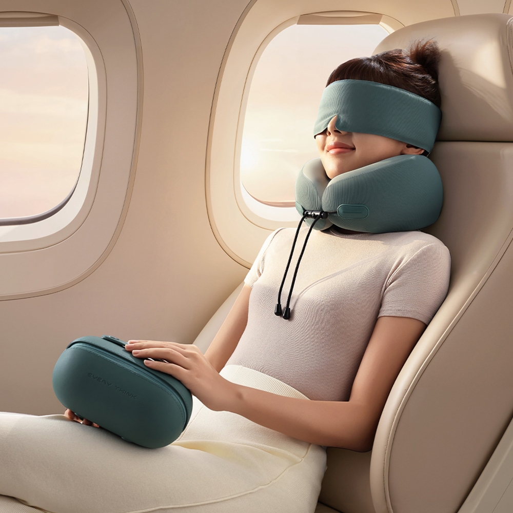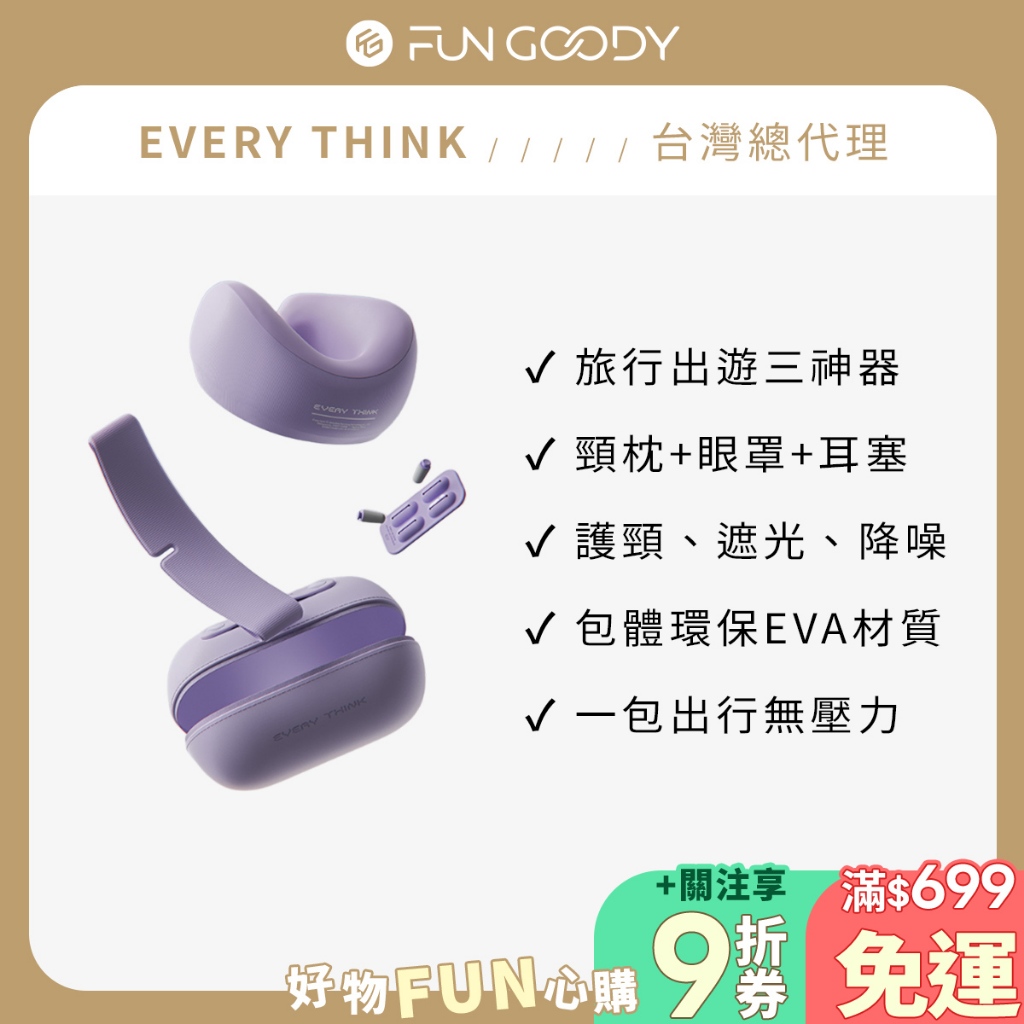 【台灣總代理】EVERY THINK|旅行出遊三件組 (捲捲U型枕+好眠眼罩+降噪耳塞) 附專屬收納包 多色可選黑色|藍色|綠色|紫色|米白色Travel Pillows & Eye CoversFun Goody 發現好物