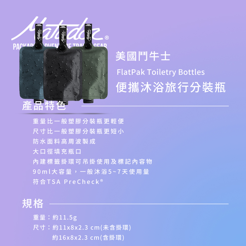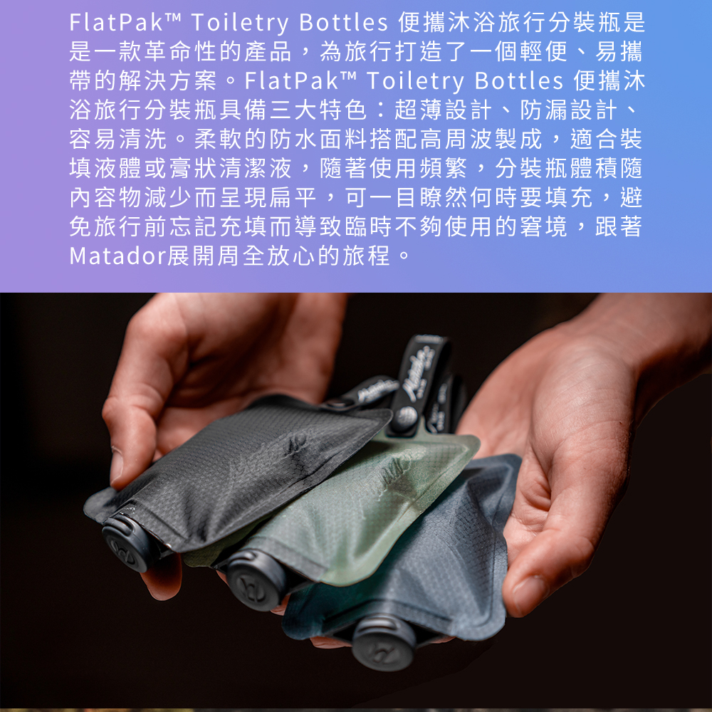 Matador鬥牛士 便攜沐浴旅行分裝瓶3入組 FlatPak Toiletry Bottle 帳蓬戶外露營單入-黑|3入組-黑|單入-藍|3色組(黑/綠/藍)|3入組-綠|3入組-藍|單入-綠|3色組(黑/酒紅/灰白)Travel Size Bottles & ContainersMatador鬥牛士官方旗艦店