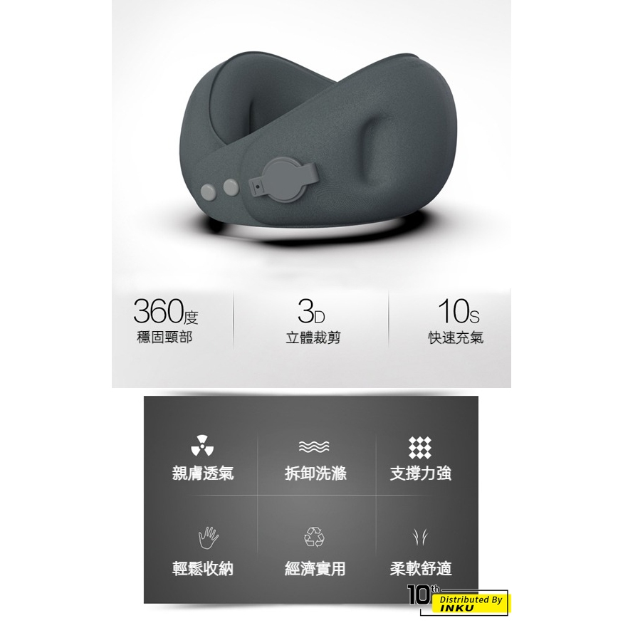 ibits SR 便攜充氣頸托 U型枕 舒適護頸靠枕 可收納飛機旅行靠枕 睡覺枕太空灰【U型枕】|太空灰【U型枕+收納盒】Travel Pillows & Eye Coversibits手機配件 官方旗艦館