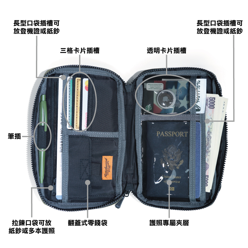 【Matchwood】Safaris 斜背手拿兩用護照包 斜背護照存摺收納包長夾 小包 小側背包 3色 SP-015橄欖綠款|全黑款|灰色款Passport Holders & CoversKIPLEO