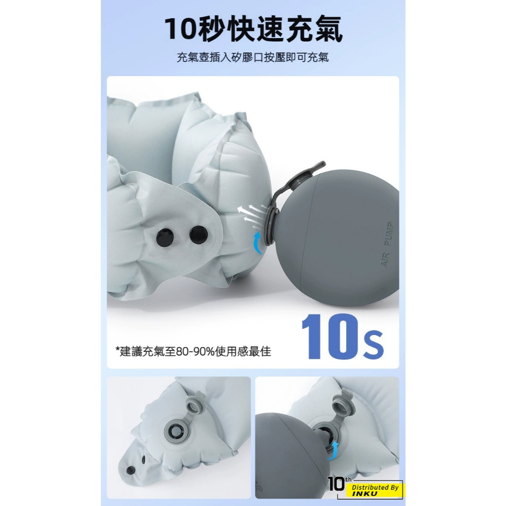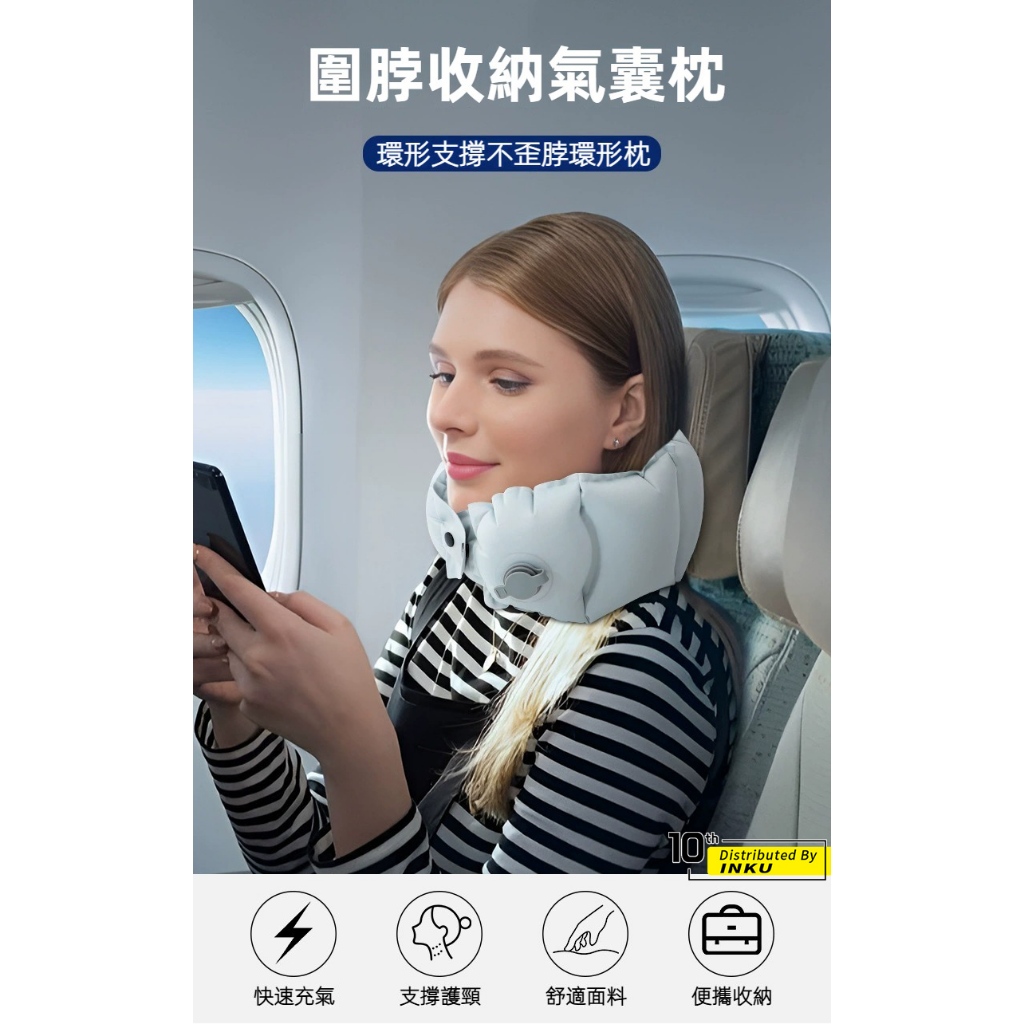 ibits U107 圍脖充氣頸枕 環型支撐 旅行便攜收納 附充氣壺粉紅色(附充氣壺)|淺藍色(附充氣壺)|淺灰色(附充氣壺)|深灰色(附充氣壺)Travel Pillows & Eye Coversibits手機配件 官方旗艦館