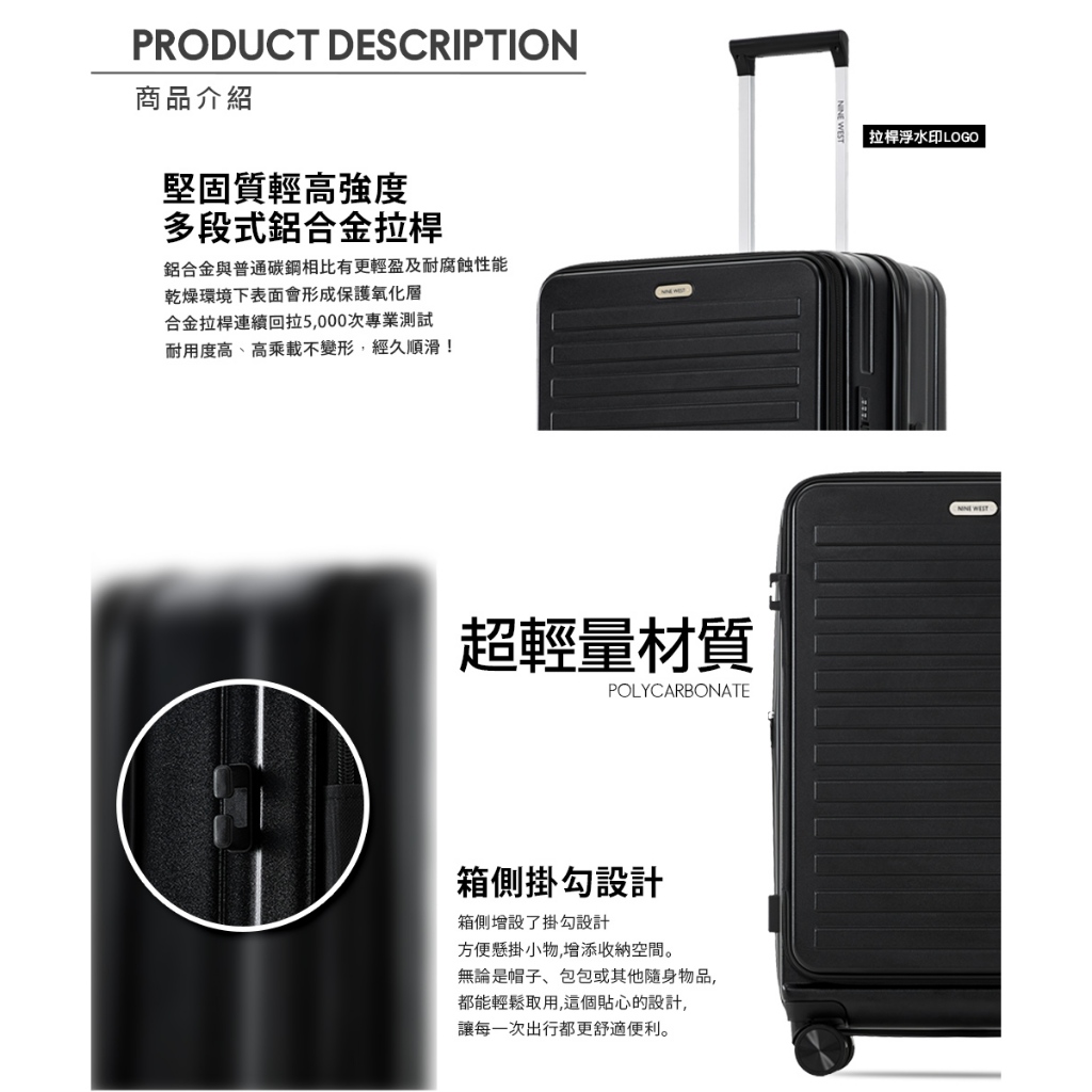 NINE WEST TADEO經典橫條 上開式 行李箱【NW31269】24吋 28吋 防爆 耐摔 可擴充 商務箱E_經典橫條_黑色24吋|E_經典橫條_黑色28吋KANGOL官方授權旗艦店 – PPBOX 行李箱