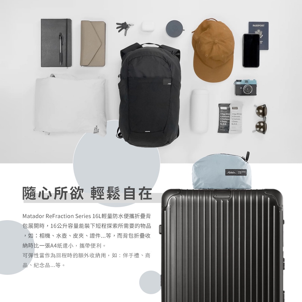 Matador ReFraction 16L輕量防水便攜折疊背包 Packable Backpack可折疊收納於行李箱中藍色|黑色|白色Foldable BagsMatador鬥牛士官方旗艦店
