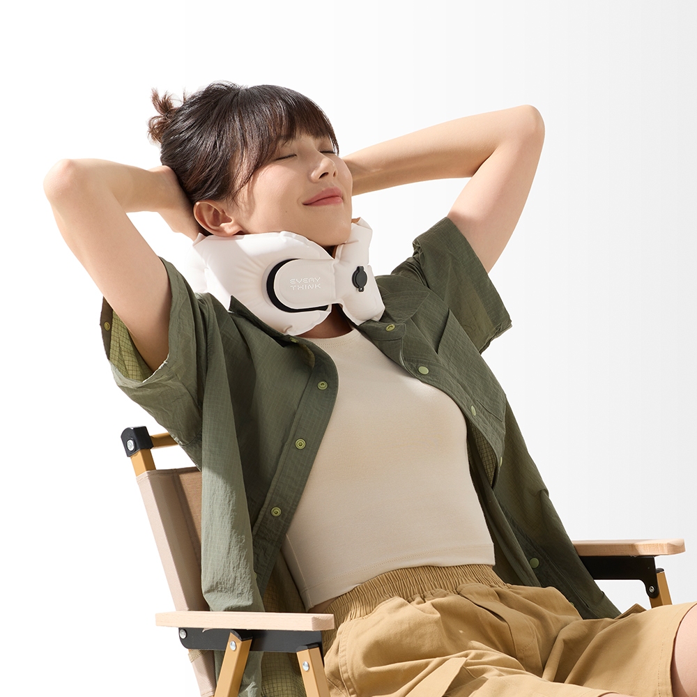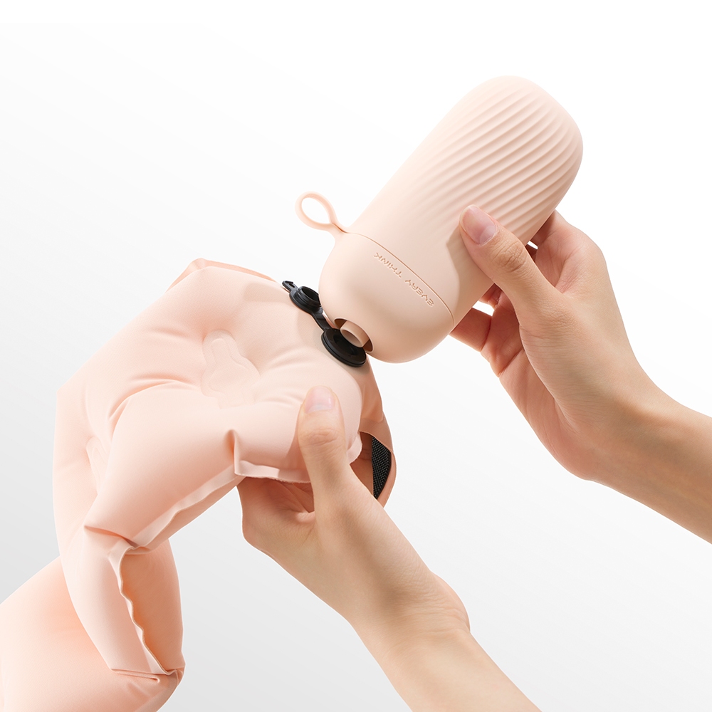 【台灣總代理】EVERY THINK|捲捲充氣旅行枕 口袋充氣頸枕 護頸枕 10秒快速充氣 環繞支撐 軟硬可調 四色可選深藍|深綠|淺灰|淺粉Travel Pillows & Eye CoversFun Goody 發現好物