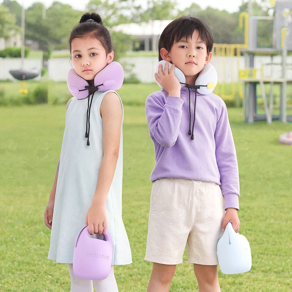 【台灣總代理】EVERY THINK|兒童專用捲捲U型頸枕 360°支撐 防歪頭 透氣親膚布 輕巧收納淺藍|深灰|雅紫Travel Pillows & Eye CoversFun Goody 發現好物