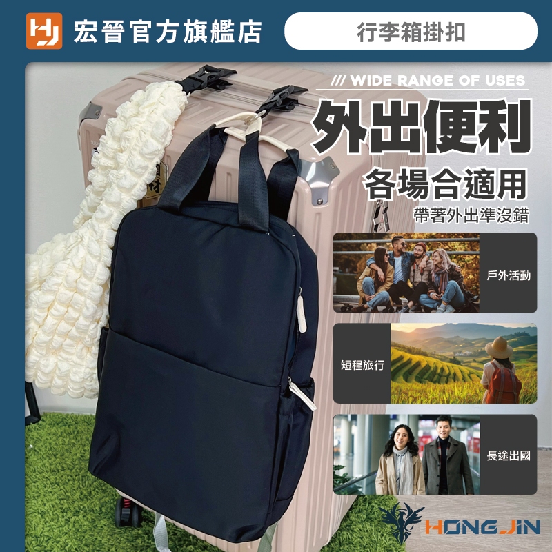 行李箱掛扣 隨處掛扣 扣環掛鉤 行李 行李掛環 行李箱掛鉤 抗刮耐磨 固定帶 行李固定帶 背包掛勾 包包掛勾 掛扣小扣環-黑色|大扣環-黑色Luggage StrapsHONG JIN 宏晉 |3C資訊廣場