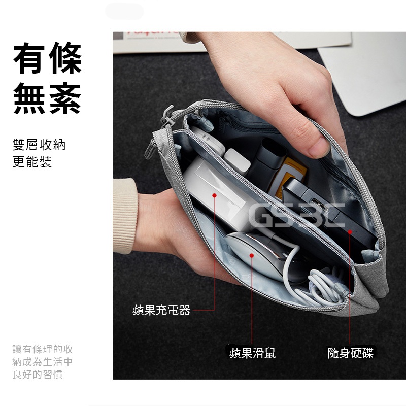 雙層 3C 配件收納包 充電線 充電器 充電頭 耳機 滑鼠 行動電源 隨身硬碟 隨身碟 收納袋 配件包 旅行包 外出包灰色|黑色Travel OrganizersGS 3C 手機平板配件選品店