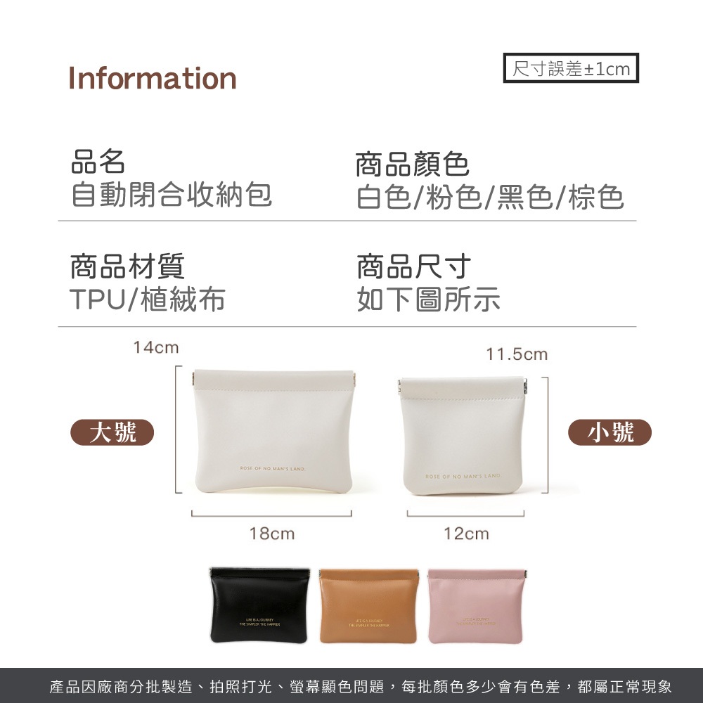 【LAVIDA嚴選】自動閉合收納包 零錢包 收納包 收納袋 旅行收納 化妝包 充電線收納 隨身收納 USB收納 彈片收納01.白色 小號|02.粉色 小號|03.黑色 小號|04.白色(有內袋) 大號|05.粉色(有內袋) 大號|06.黑色(有內袋) 大號|07.棕色(有內袋) 大號Travel OrganizersLAVIDA 育兒好好玩!