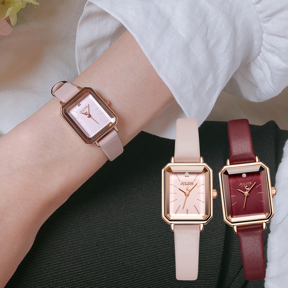 JULIUS 聚利時 JA-1231 巴塞隆納皮革切割鏡面方形腕錶(20X30mm)四色Baby粉|酒紅色|氣質黑|復古綠JULIUS TAIWAN 聚利時韓系腕錶