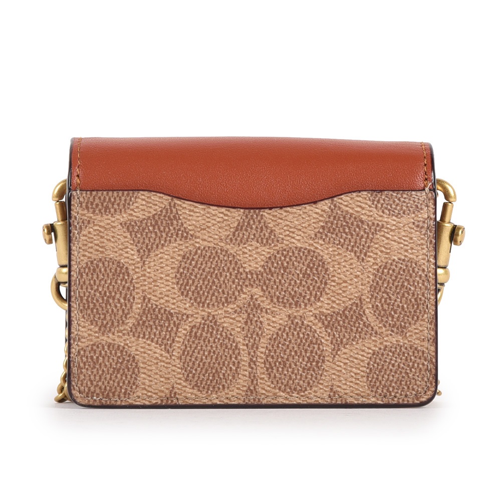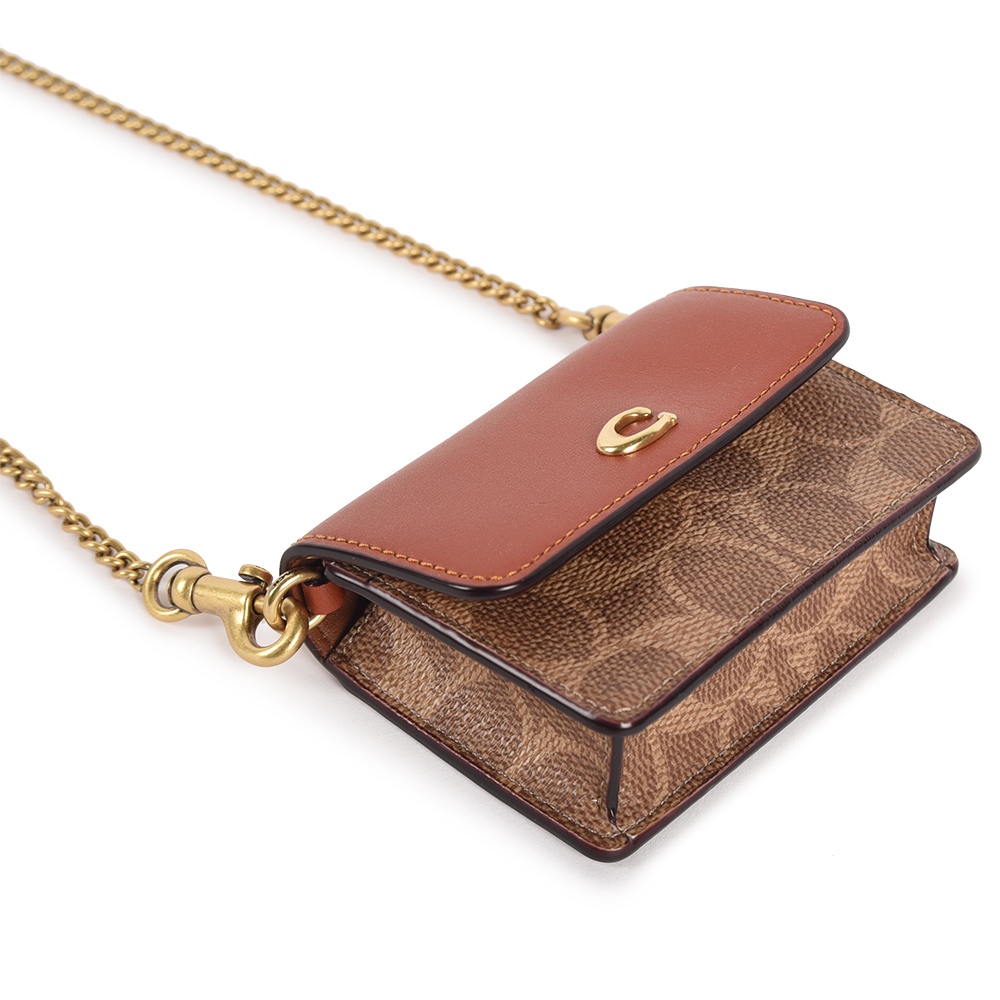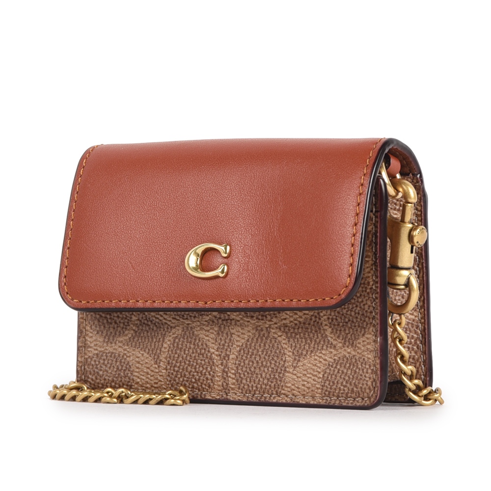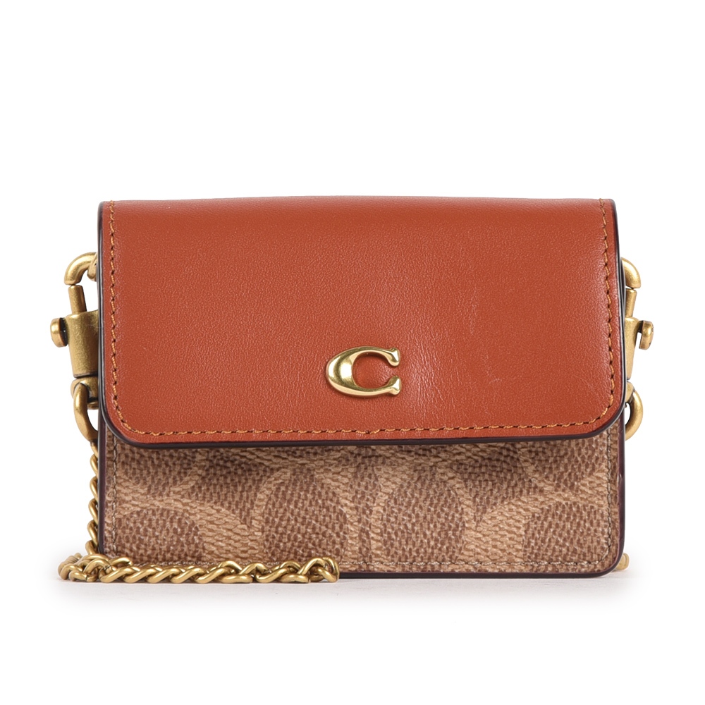 COACH金屬C字老花紋拼接皮革迷你斜背鏈帶卡包(卡其棕)194815-1|GoBrand購名牌COACH金屬C字老花紋拼接皮革迷你斜背鏈帶卡包(卡其棕)194815-1|GoBrand購名牌GoBrand購名牌精品網