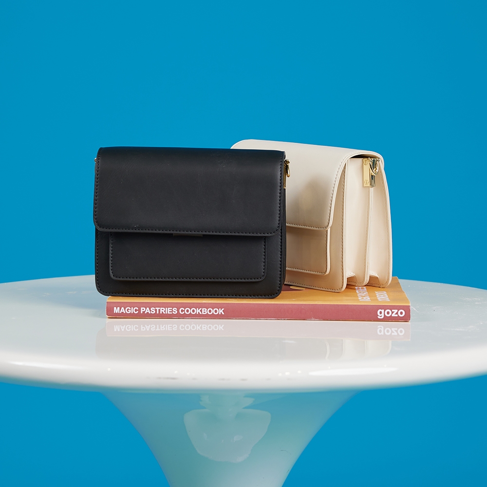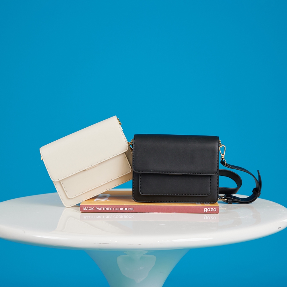 【gozo】硬皮斜背小方包(黑色/米色_F) | 斜背包 皮革 小包 側背包黑色,F|米色,Fgozo 品牌旗艦店