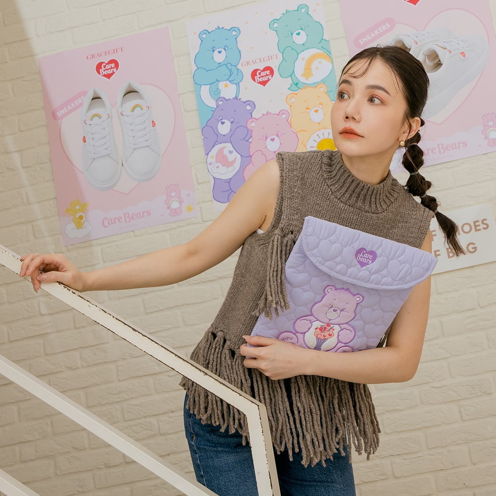 【Grace Gift】Care Bears -樂觀/幽默/分享/晚安小熊愛心鋪棉平板包粉紅|淺黃|淺藍|淺紫Laptop SleevesGrace gift 正式官方旗艦店