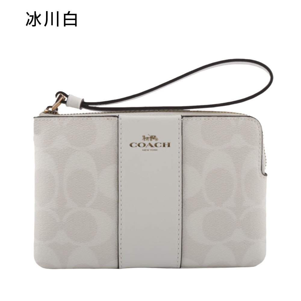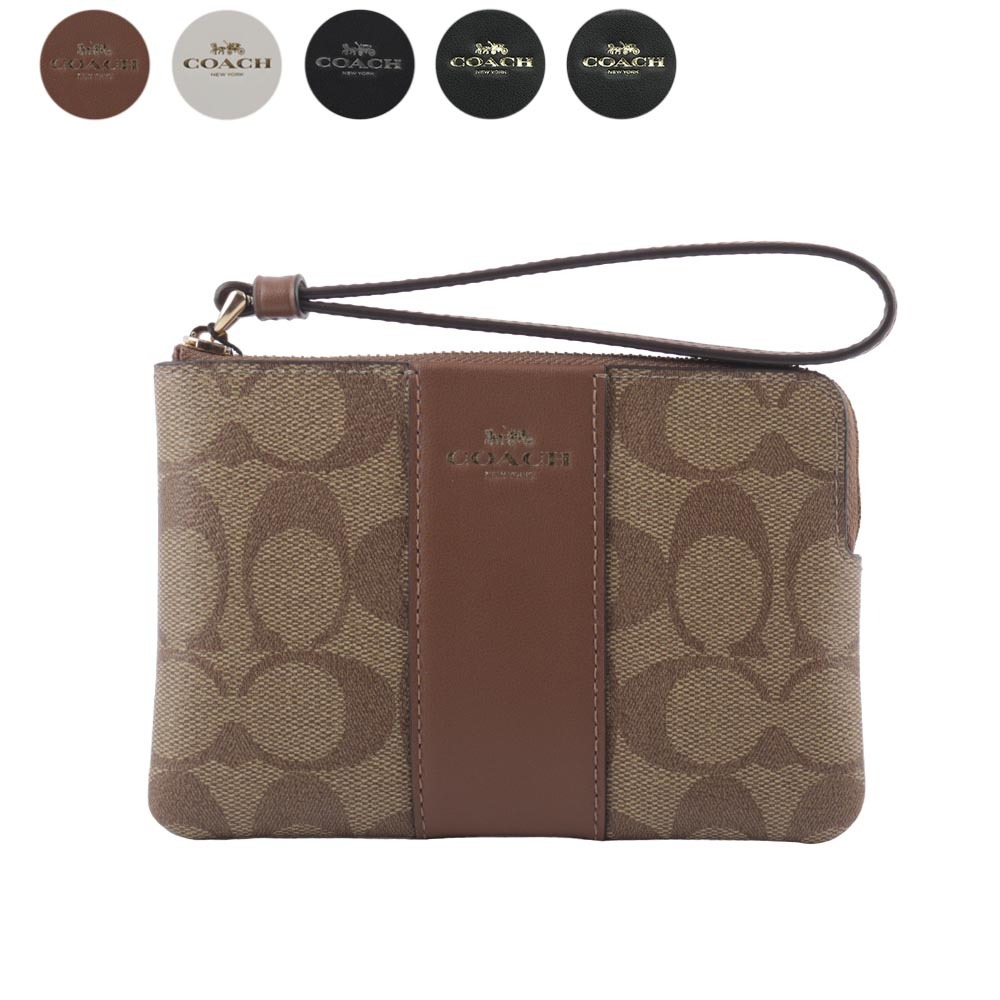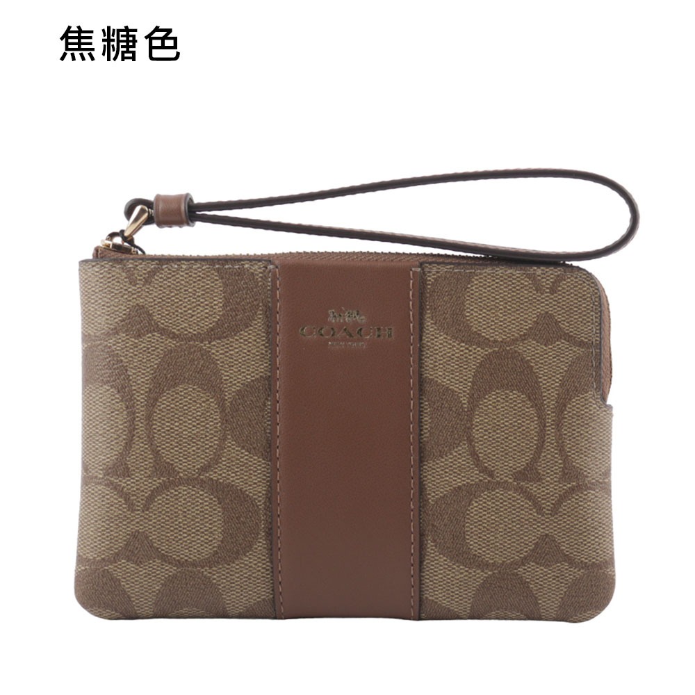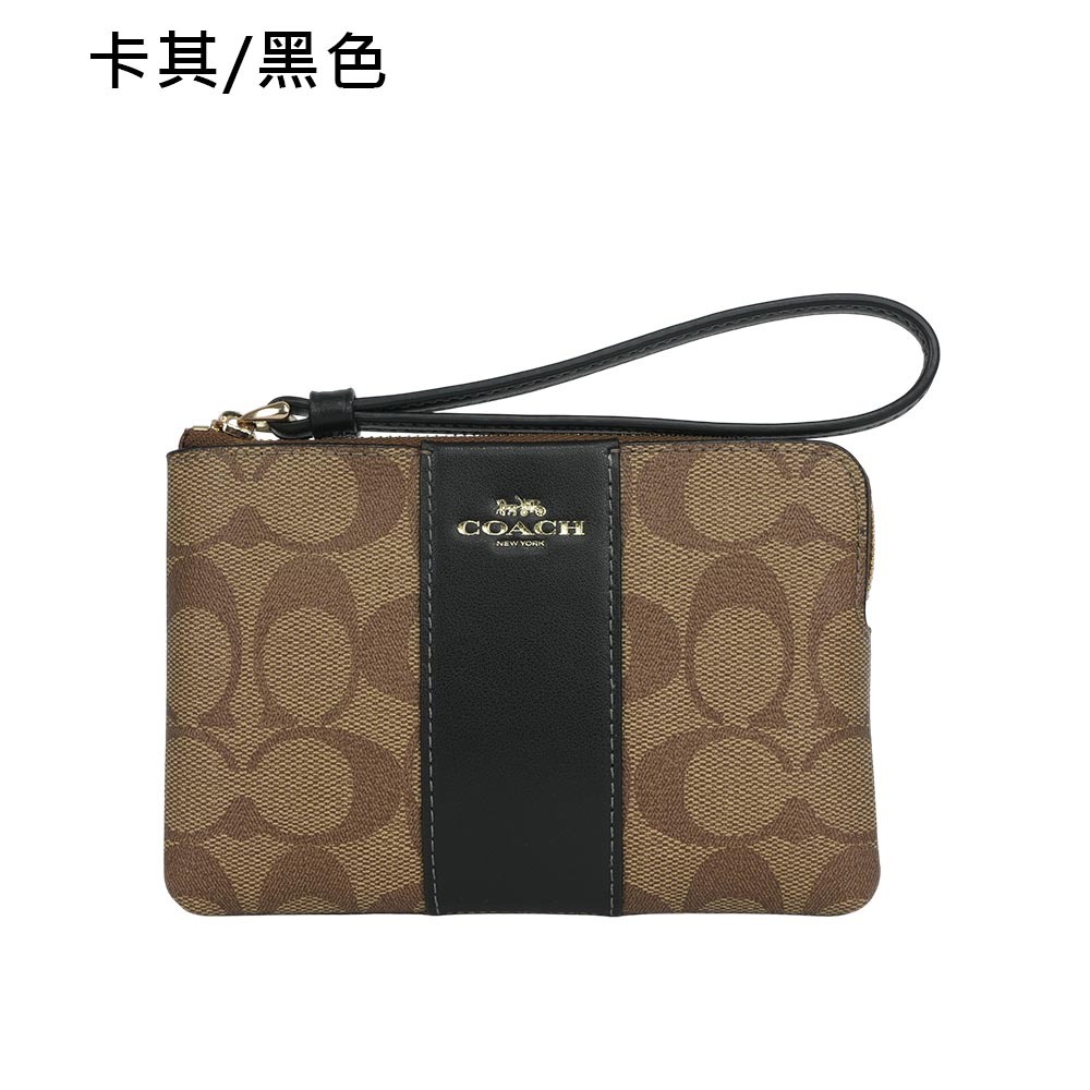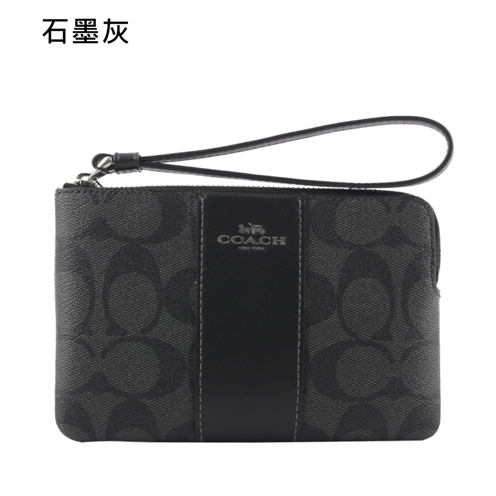 COACH 塗層帆布及再生皮革L 型拉鍊手拿包(任選) CS602巧克力/黑色|卡其/黑色|焦糖色|冰川白|石墨灰JR名牌精品