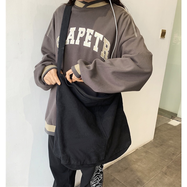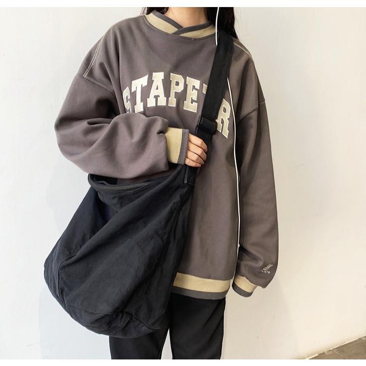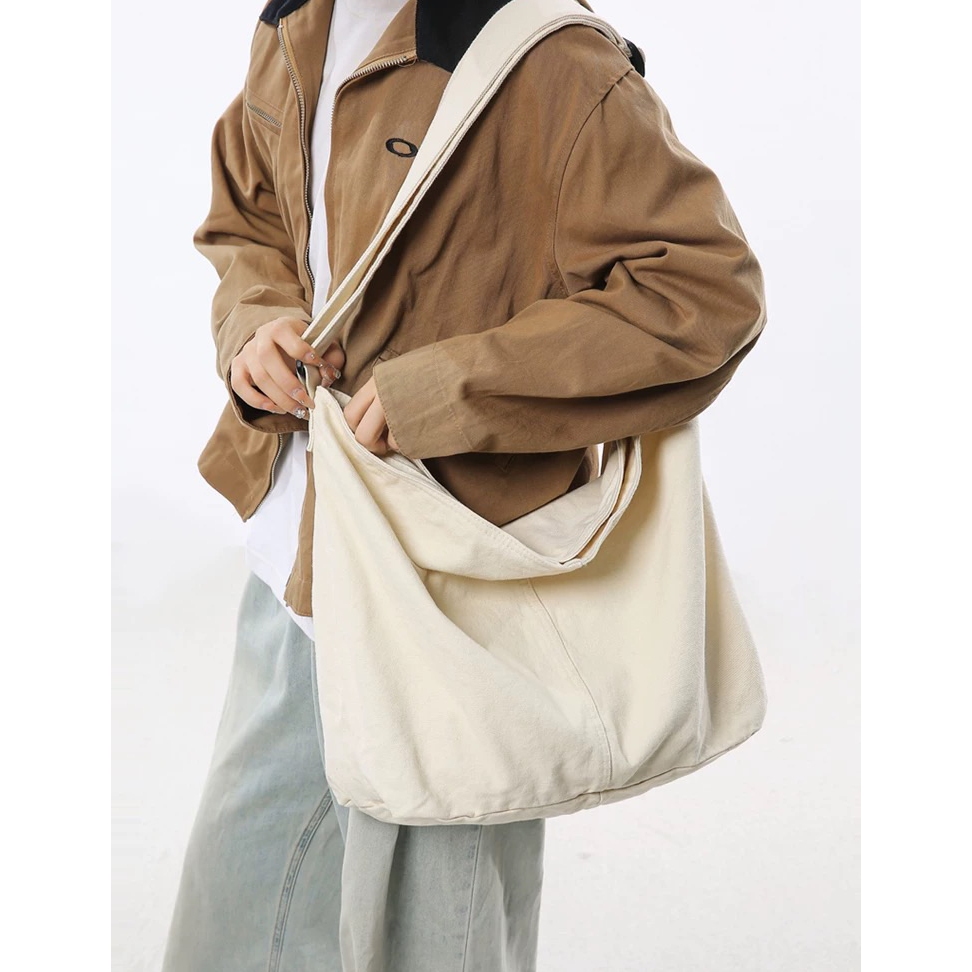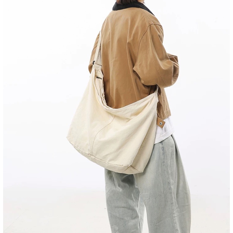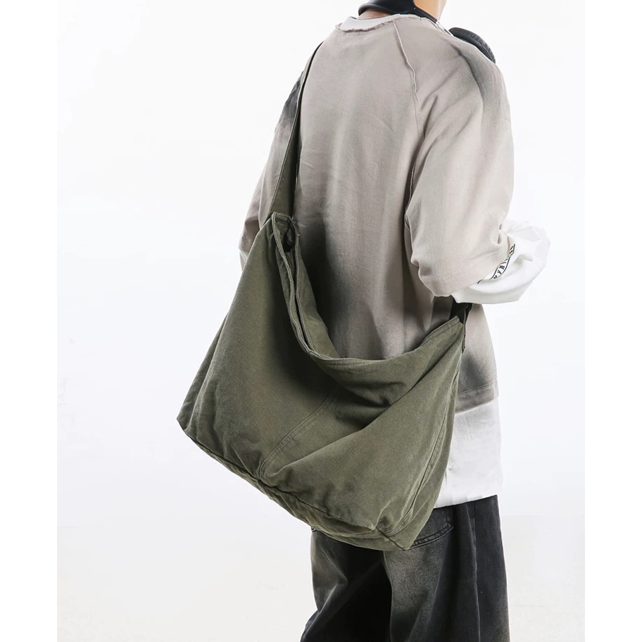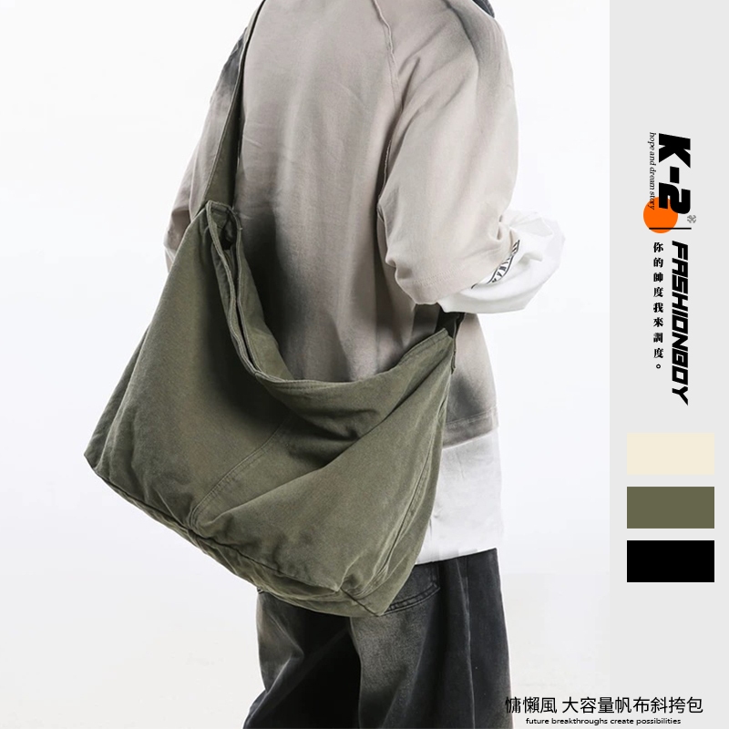 【K-2】隔日到貨 慵懶風文青大容量帆布斜挎包 簡約帆布單肩包 大容量 學生書包 帆布 側背包 日系 工裝帆布包 包米白色|綠色|黑色K-2 Fashionboy