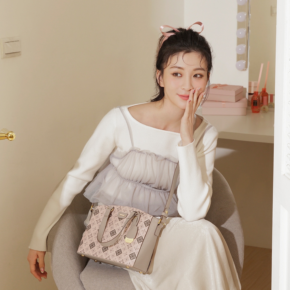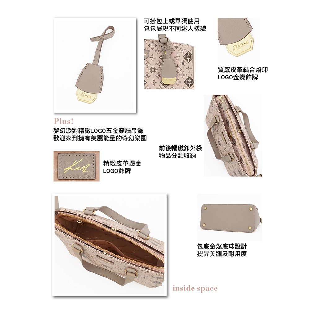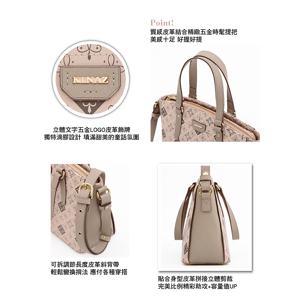 KINAZ 飾牌皮革吊飾多層老花圖騰拼接手提斜背包-粉紅泡泡糖-芭比樂園系列KINAZ 飾牌皮革吊飾多層老花圖騰拼接手提斜背包-粉紅泡泡糖-芭比樂園系列KINAZ官方直營