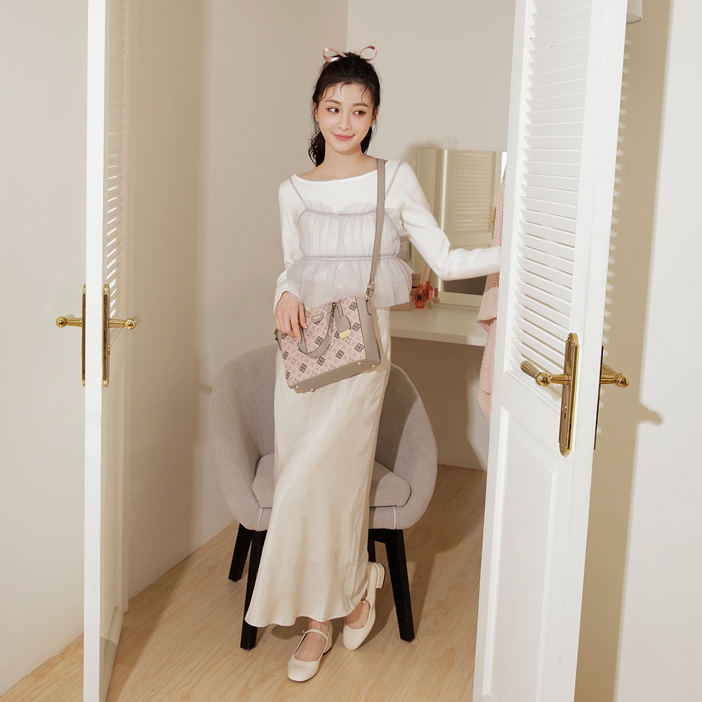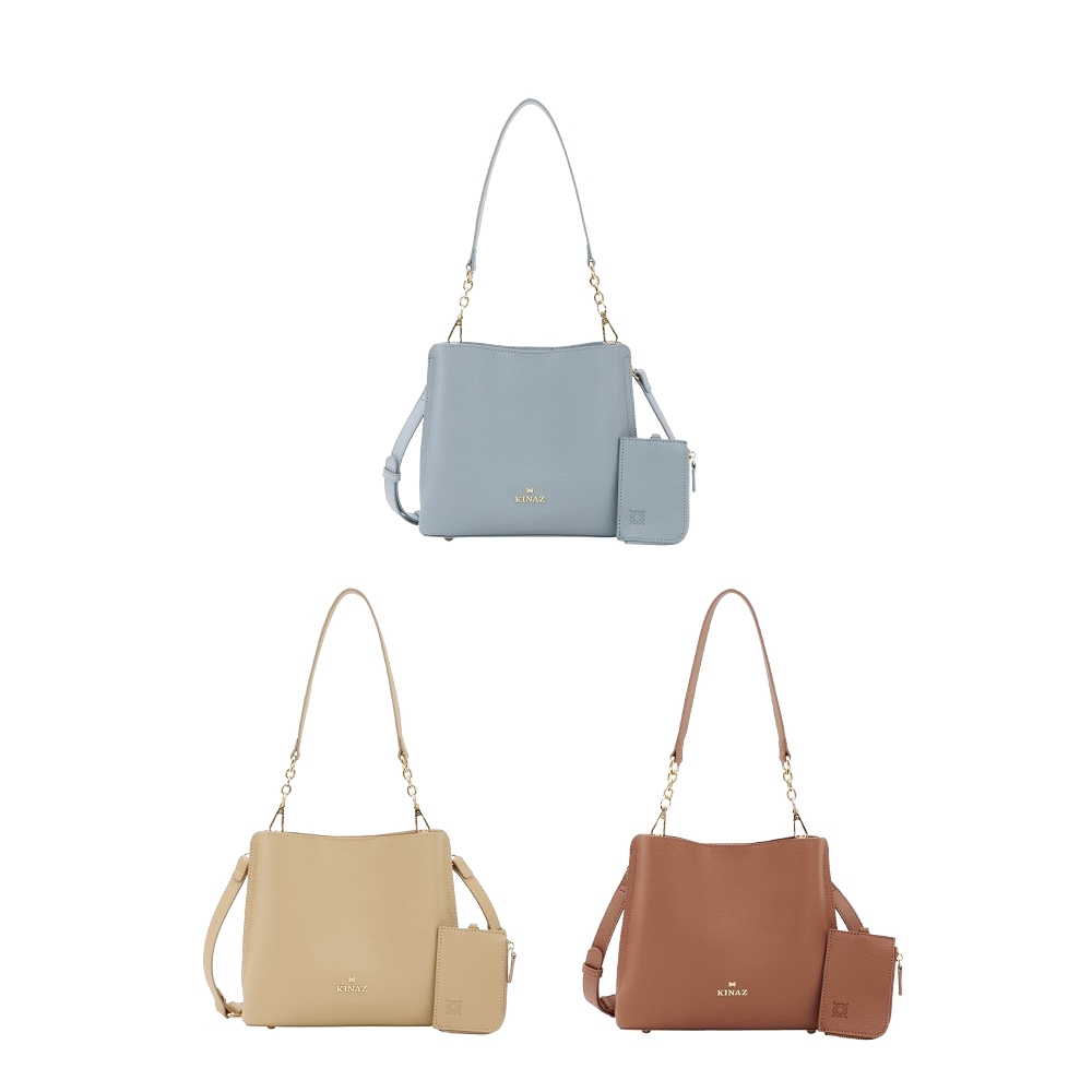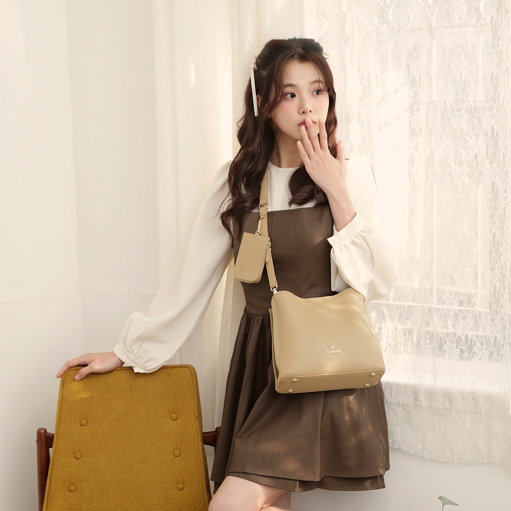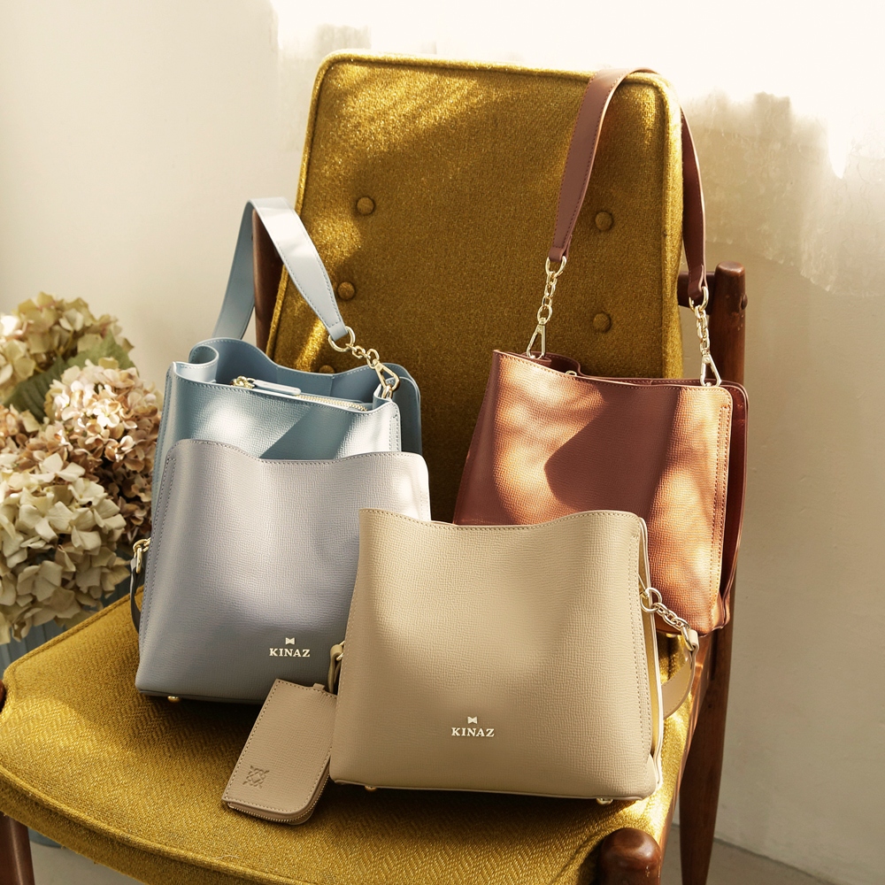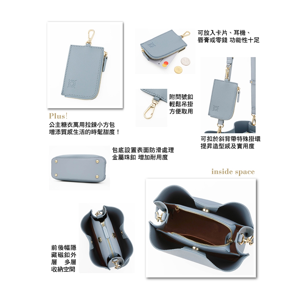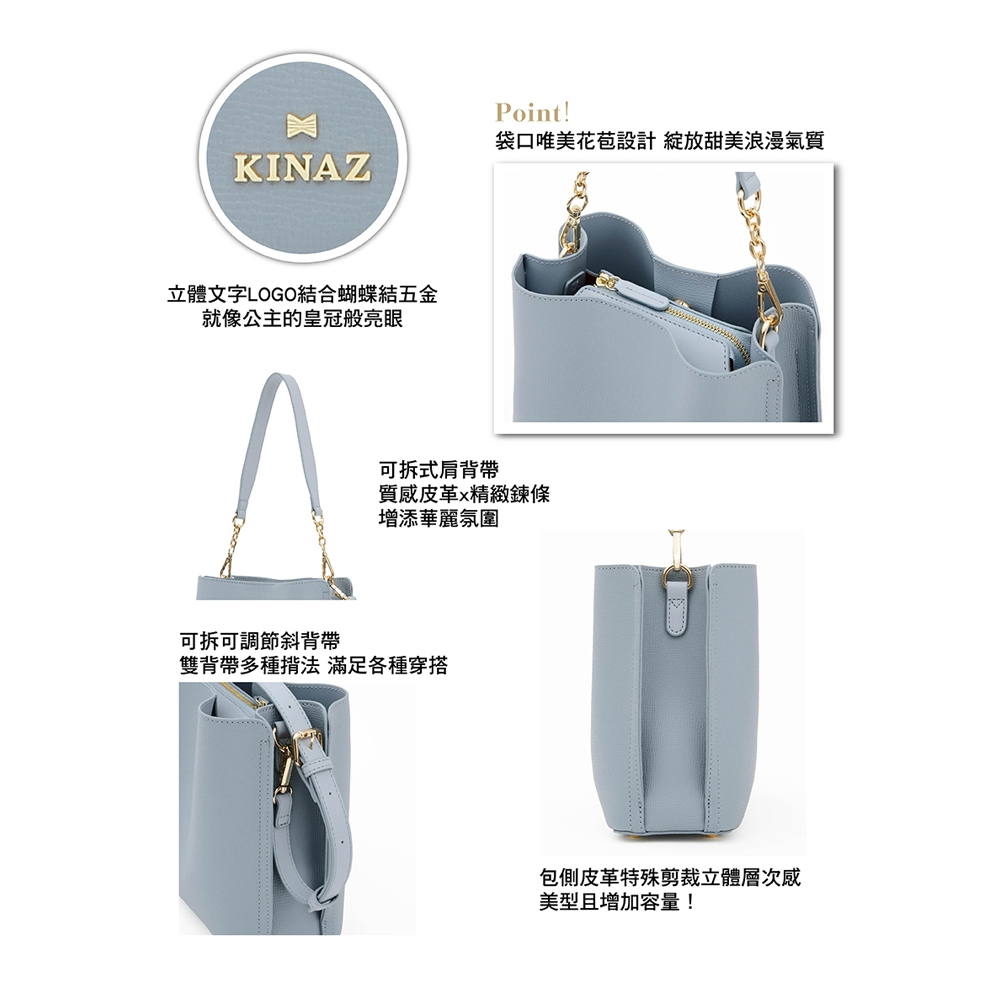 KINAZ 小花苞袋口多層附拉鍊包雙背帶肩背斜背水桶包-小公主系列棉花糖藍|奶油芥黃|咖啡軟糖KINAZ官方直營
