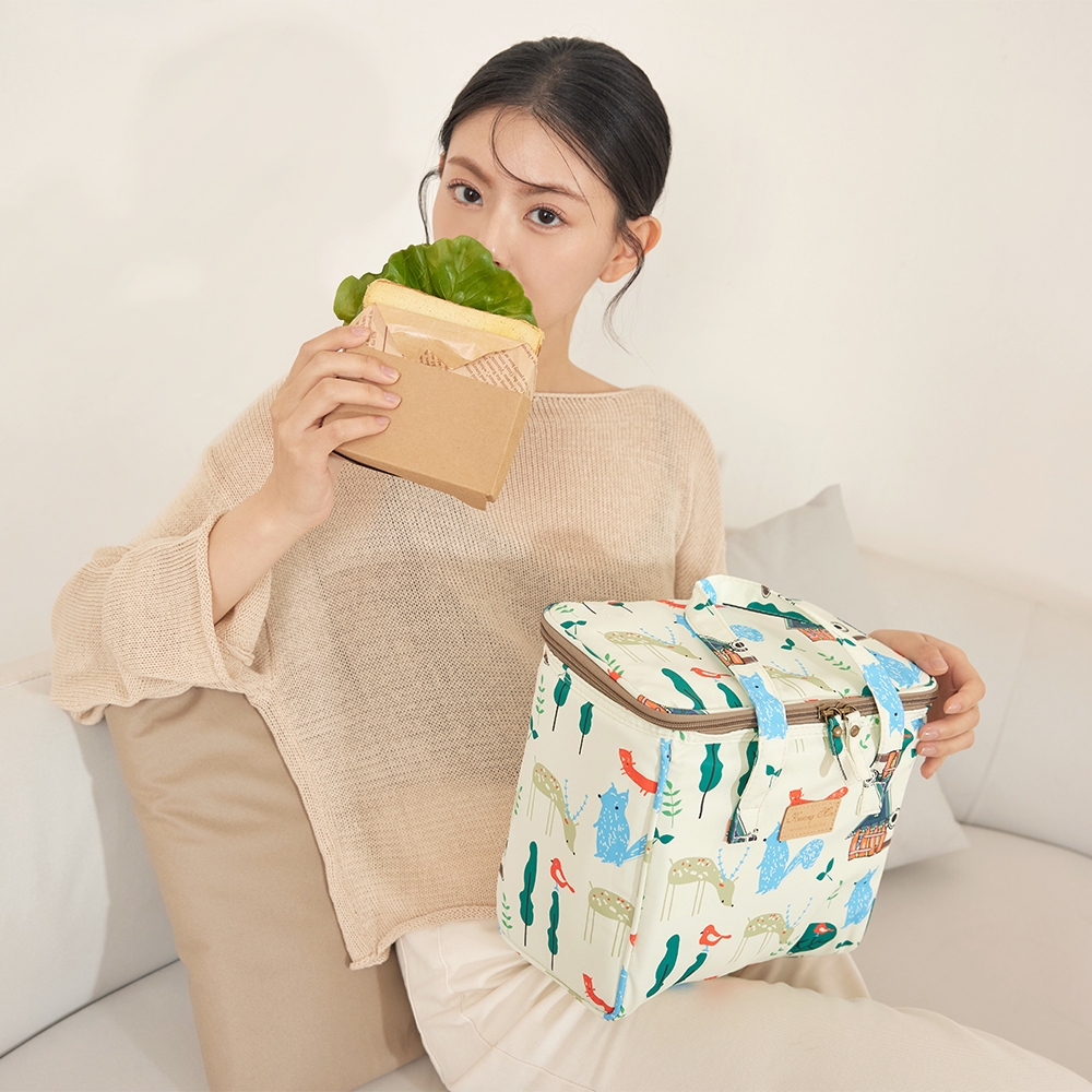 Kiiwi O! 加厚大容量立體多功能保溫袋 (多色選)白色動物園|深藍羊駝|眼鏡狗|藍色動物園|粉色羊駝|羊駝樂園|粉紅兔|鳥語|百合|可愛熊|茶花|茱萸Kiiwi O! 官方旗艦店