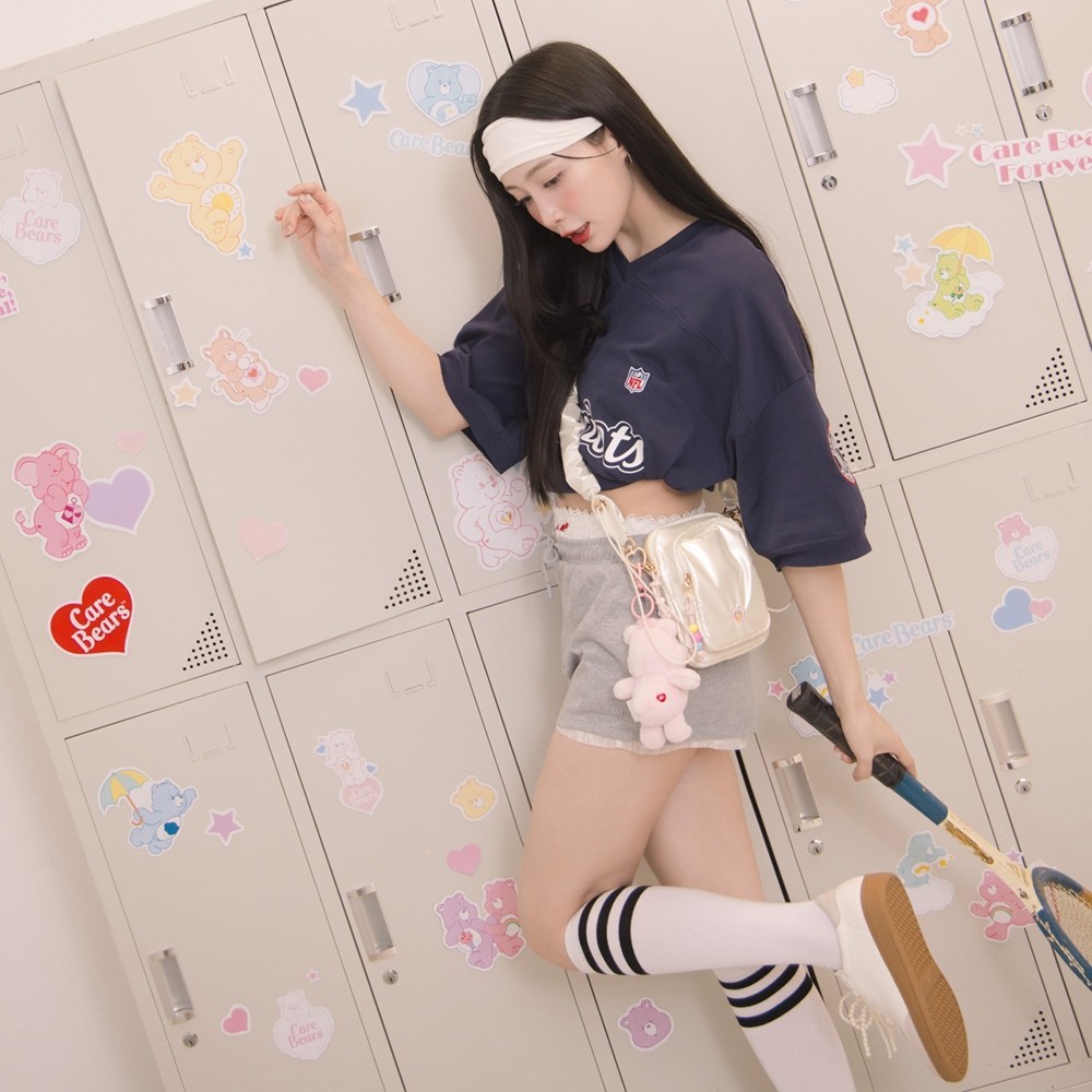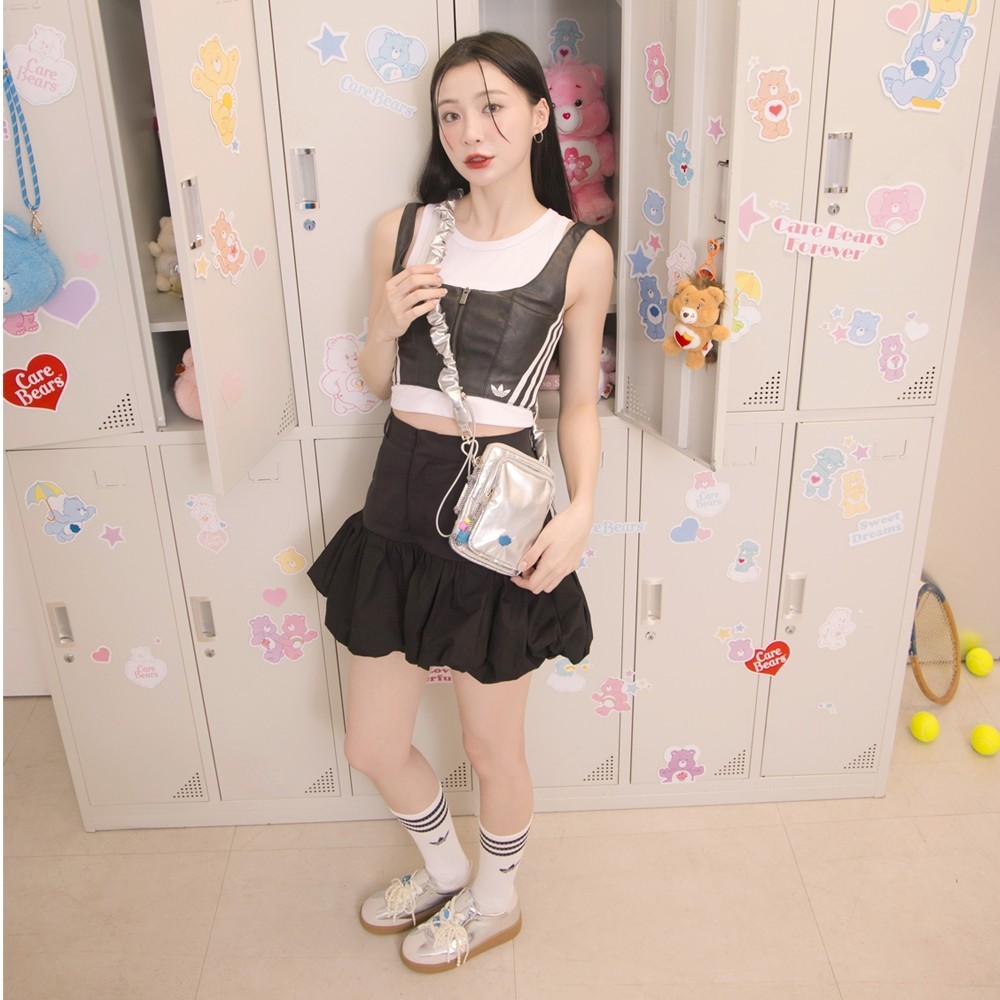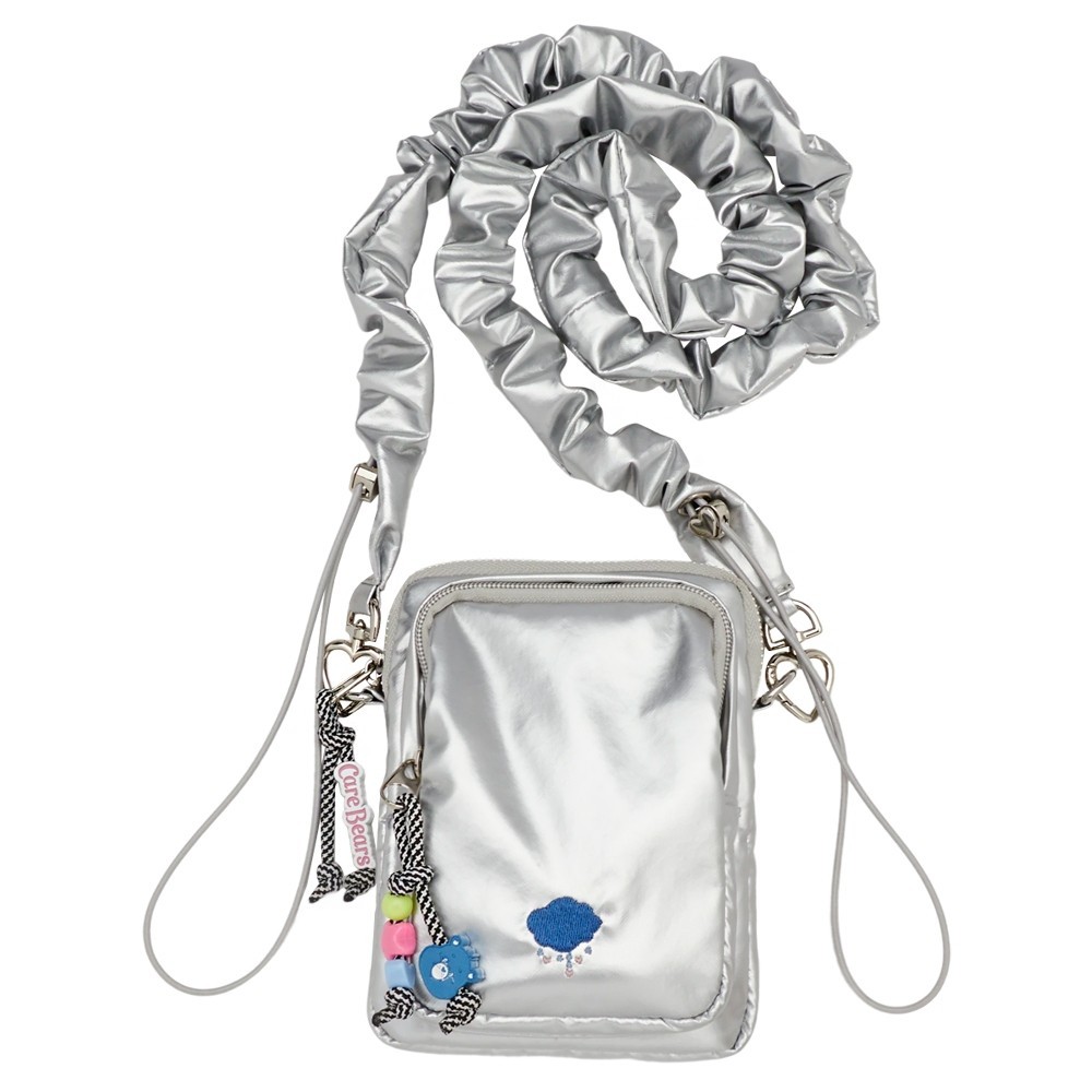 【Grace Gift】包包【Care Bears-鑽石/牢騷小熊2WAY珠光空氣小方包】2色 空氣包 手機背帶米白|銀Grace gift 正式官方旗艦店