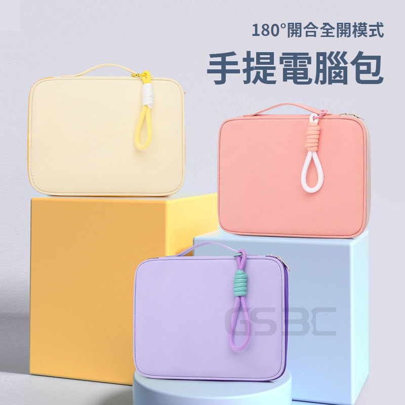 手提 電腦包 平板包 iPad Macbook 全開 收納包 夾層 提把 大容量 防潑水 附掛繩 可扣小物 電腦套 防摔粉色,11吋內|粉色,13-14吋|紫色,11吋內|紫色,13-14吋|黃色,11吋內|黃色,13-14吋|黑色,11吋內|黑色,13-14吋Laptop Bags & CasesGS 3C 手機平板配件選品店