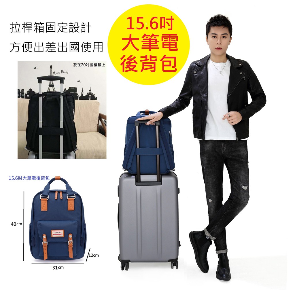Heine海恩15.6吋筆電後背包 大尺寸後背包 大學生書包 電腦包 旅行包 防盜防潑水 畢業禮物黑色|藏藍色|軍綠Laptop BackpacksHeine海恩後背包