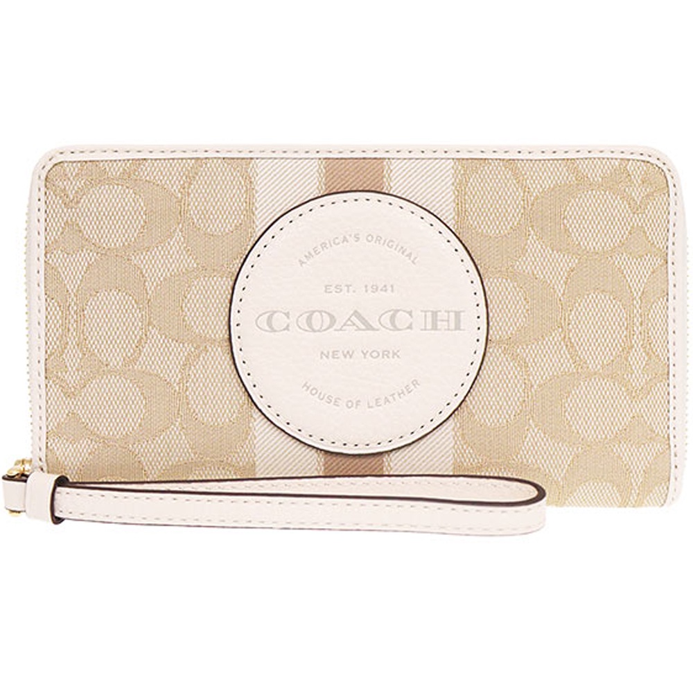 【COACH】白X奶茶X淺卡其織紋布圓標LOGO手提帶拉鍊式長夾【COACH】白X奶茶X淺卡其織紋布圓標LOGO手提帶拉鍊式長夾Long WalletsHDL國際名品
